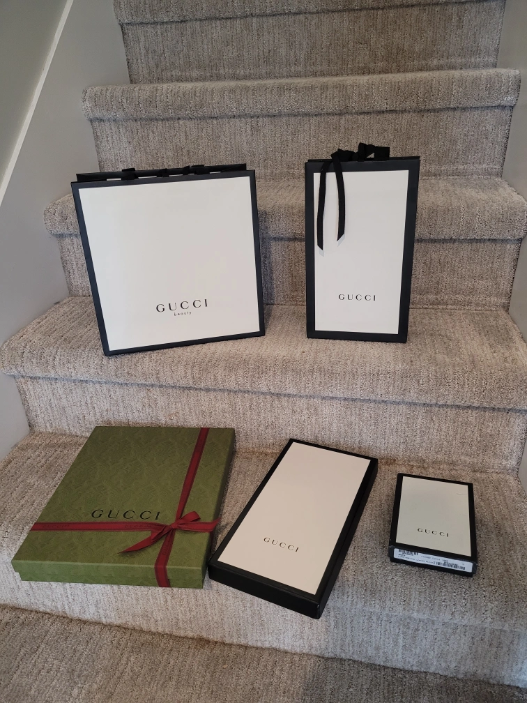 Selling several Gucci gift boxes and bags. Great for storing or gifting items! Includes a variety of sizes and styles, including boxes with ribbon and shopping bags. Perfect for keeping your items safe and stylish