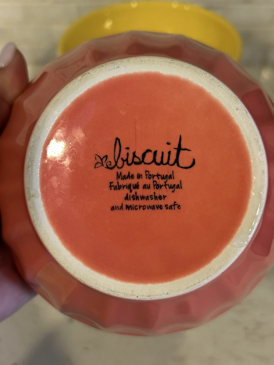 Selling a set of 4 cereal bowls! They're in great shape and ready for a new home. These bowls are made in Portugal and are both dishwasher and microwave safe. They come in a variety of colours: hot pink, yellow, and green. Perfect for adding a pop of colour to your kitchen!