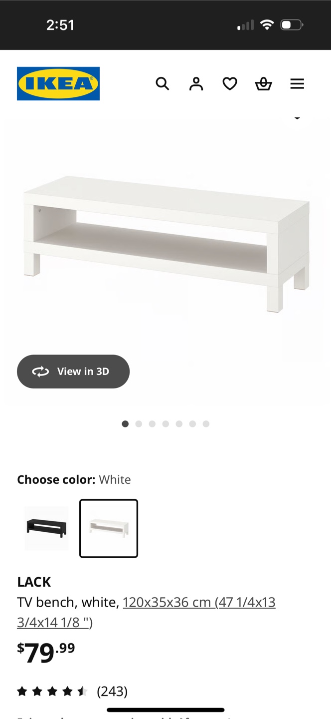 Selling an IKEA LACK TV bench in white! It's in great condition and ready for a new home. The dimensions are 120x35x36 cm (47 1/4x13 3/4x14 1/8 "). Originally bought for $79.99.