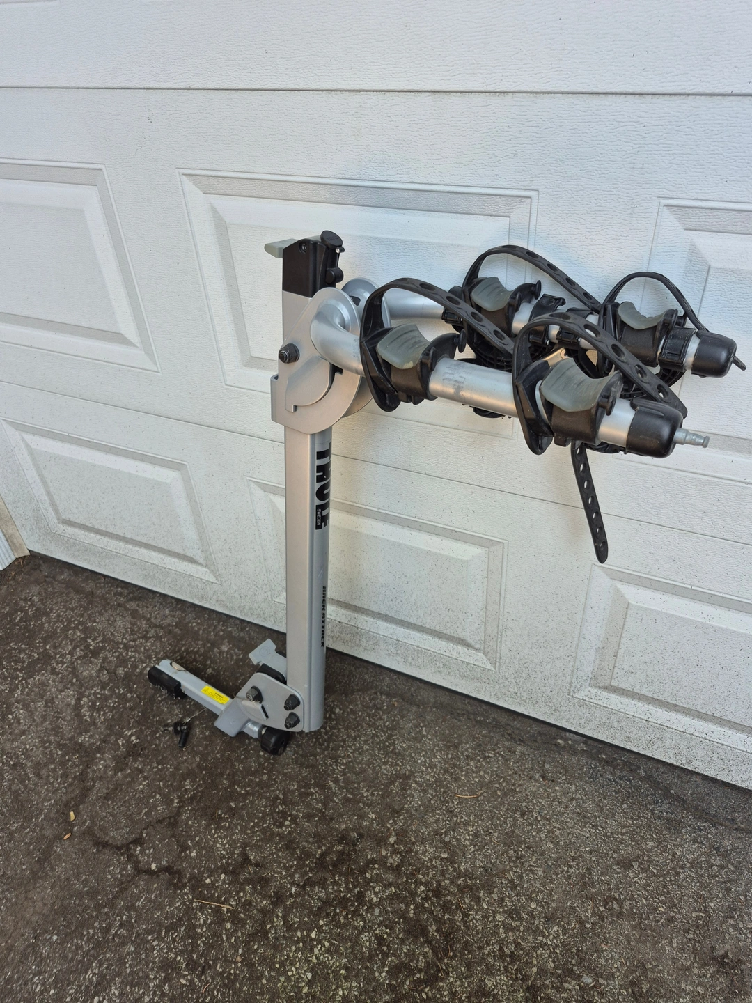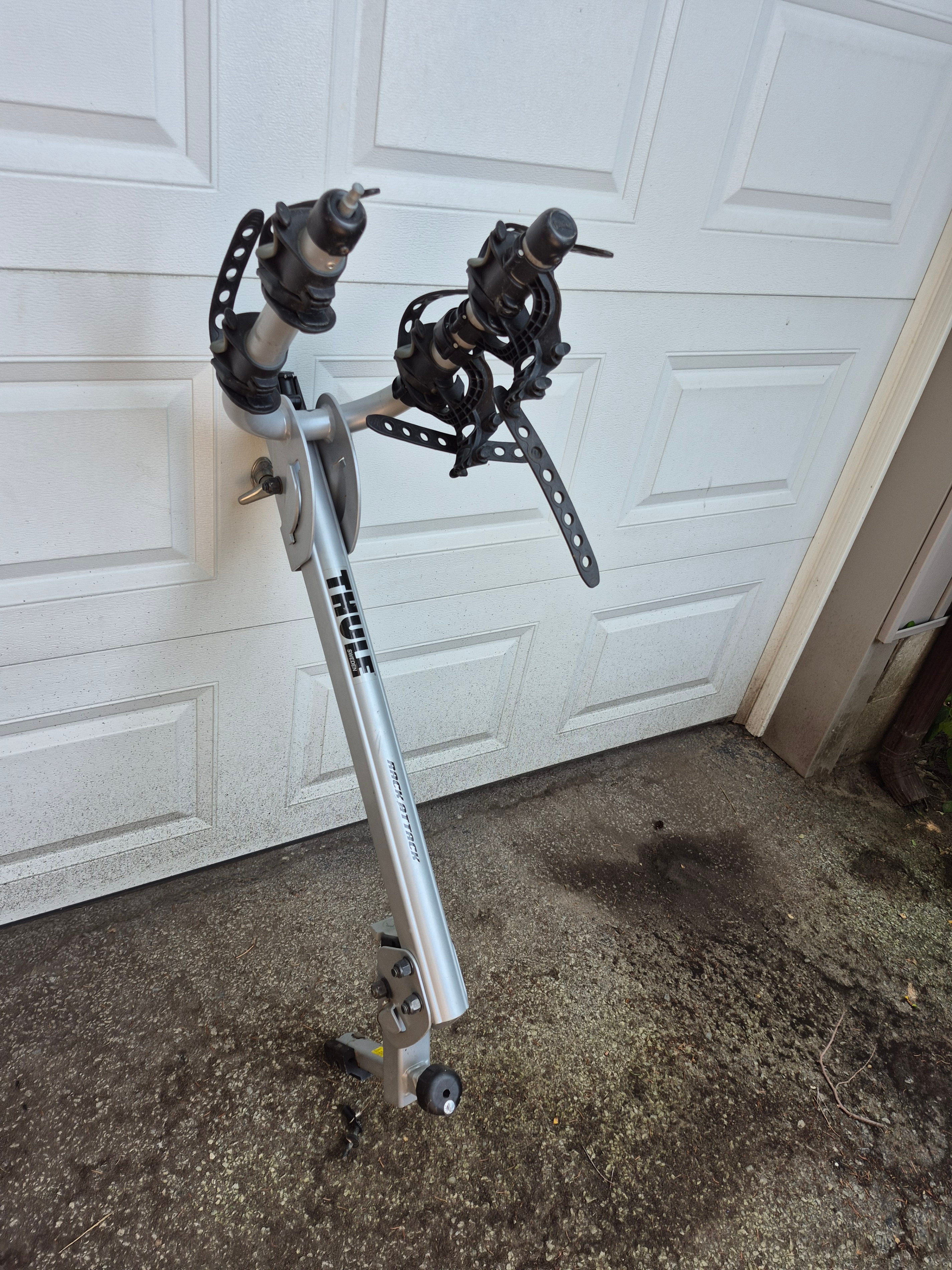Thule Helium 2 bike hitch rack. Fits 2" and 1.25" hitch sizes.
