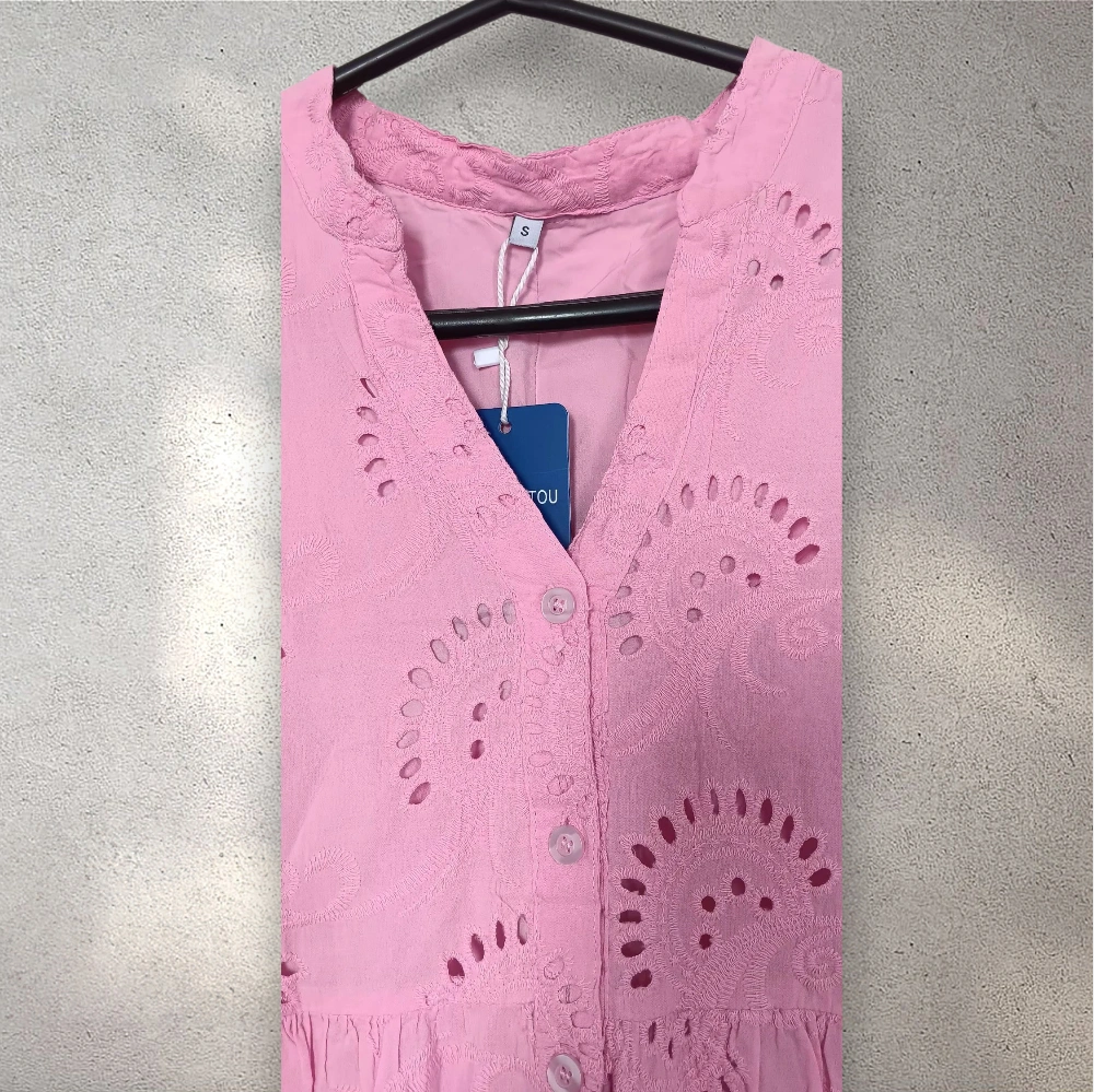 Brand New Eyelet Embroidery V-Neck Maxi Dress w/ Tag