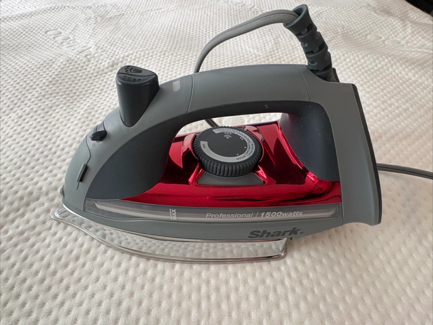 Selling a Shark Professional 1500W steam iron. Perfect for getting those wrinkles out. It shows signs of use on the soleplate, but the scratches don’t affect the functionality and performance of the iron.