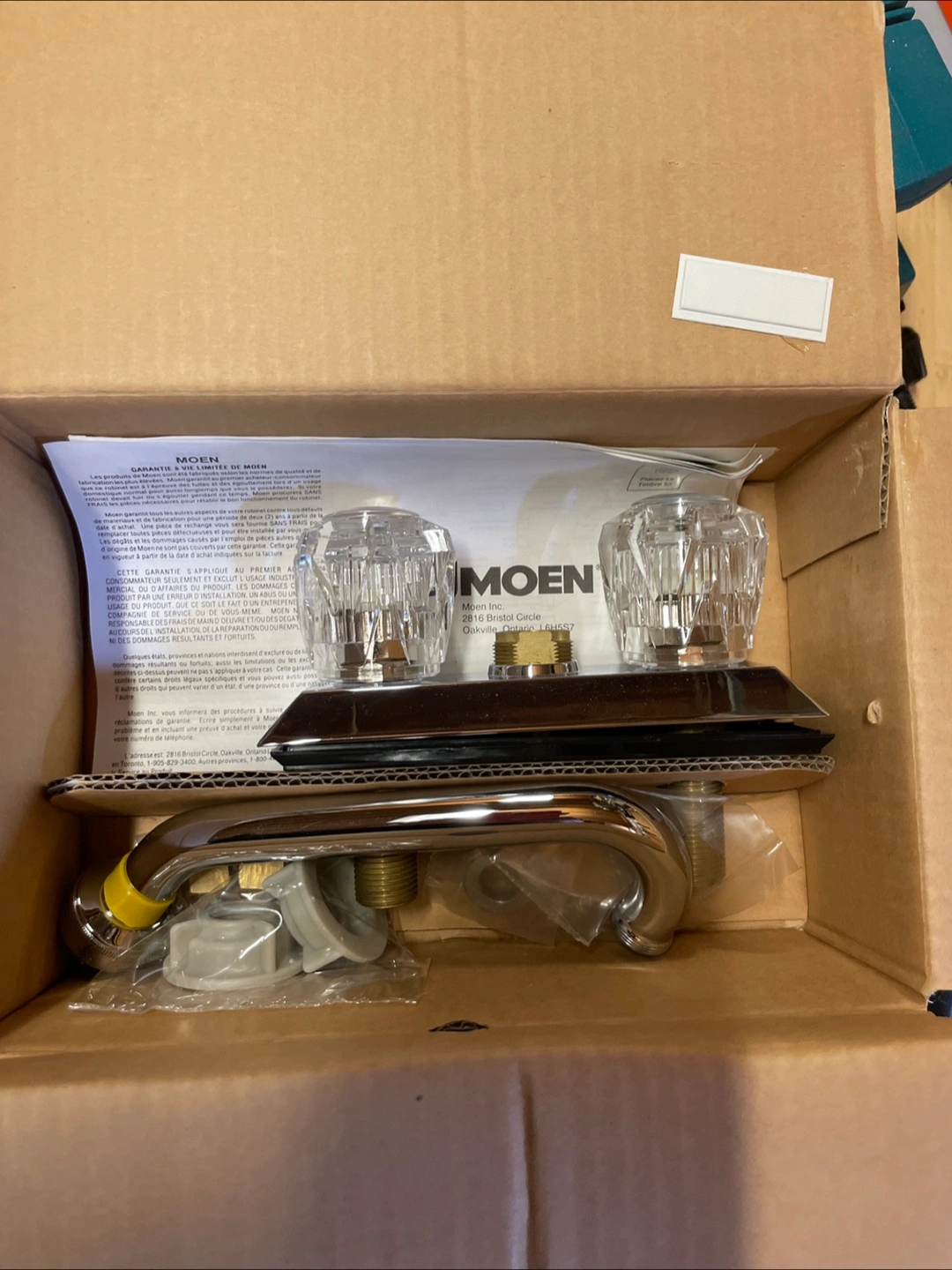 Selling a brand new Moen faucet set, still in its original box! It comes with all the necessary components for installation. A great way to upgrade your bathroom or kitchen sink with a trusted brand like Moen