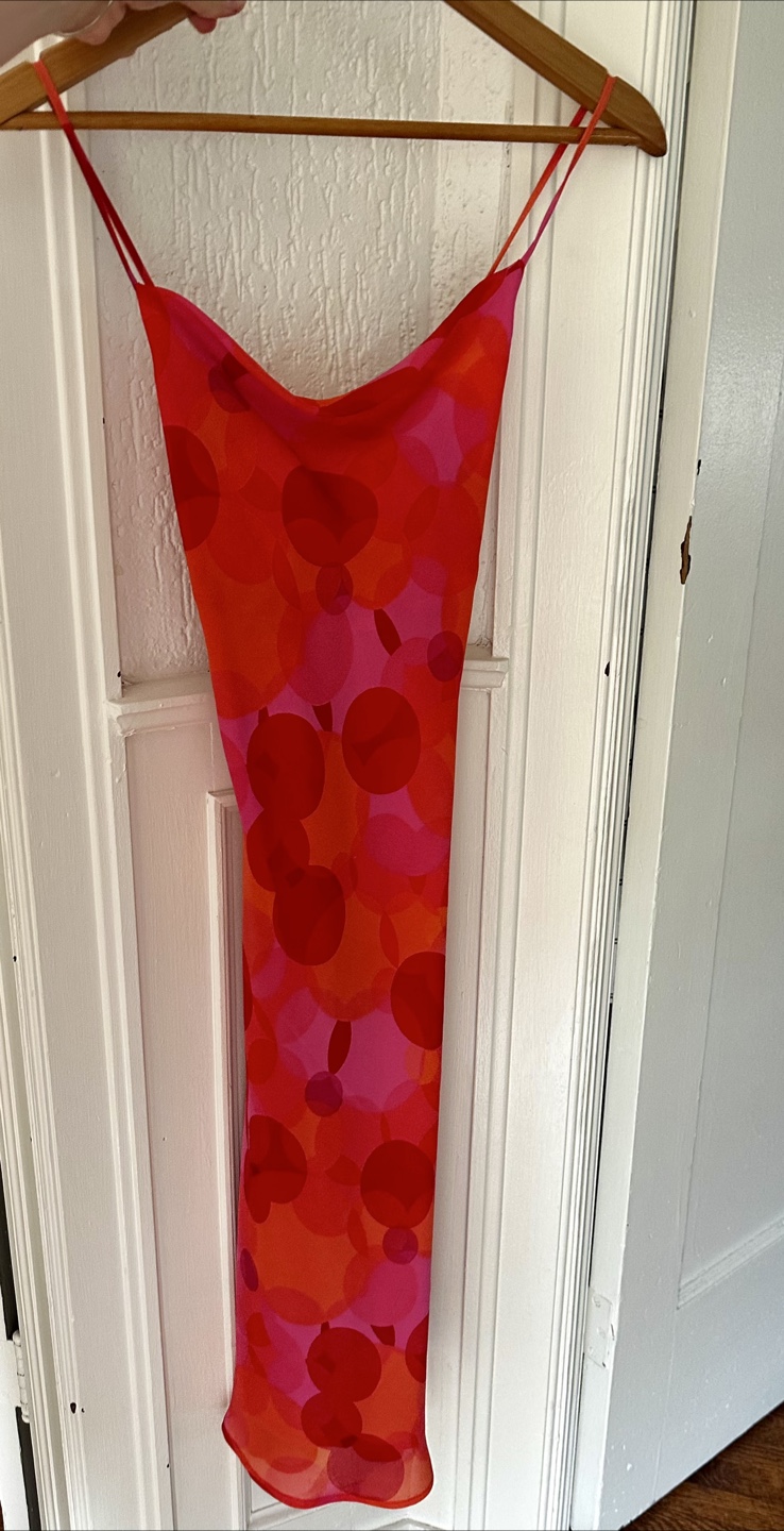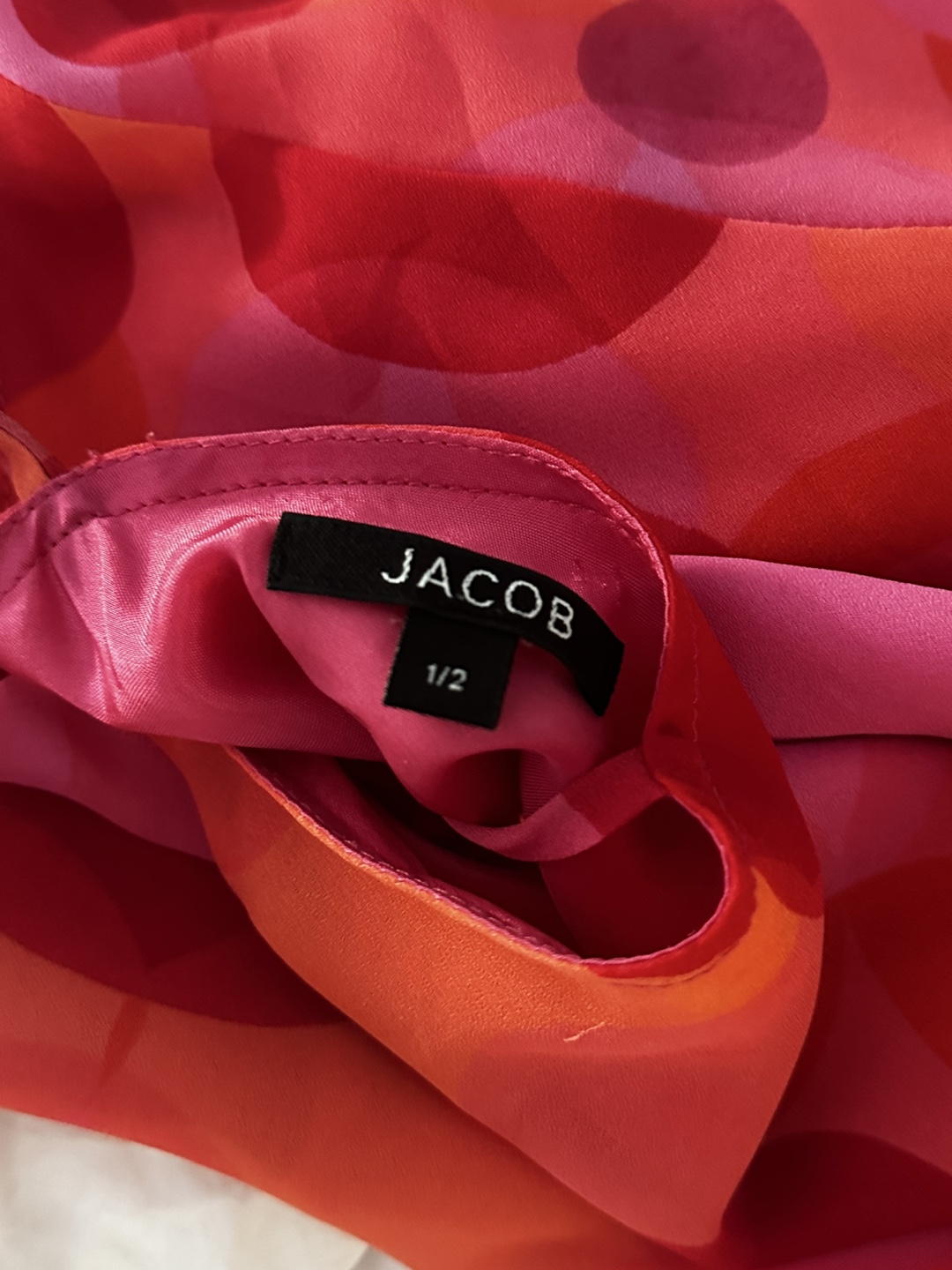 Beautiful vintage Jacob midi dress. Gorgeous pattern with striking orange, red and pink hues. Perfect for standout style. The pattern, material, and silhouette is just stunning! Doesn't fit anymore so I am hoping it goes to a loving home. Perfect condition, no signs or wear.