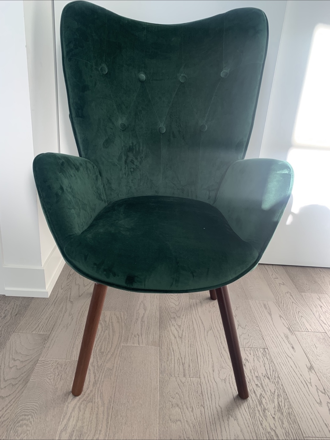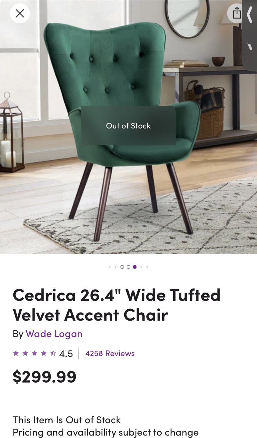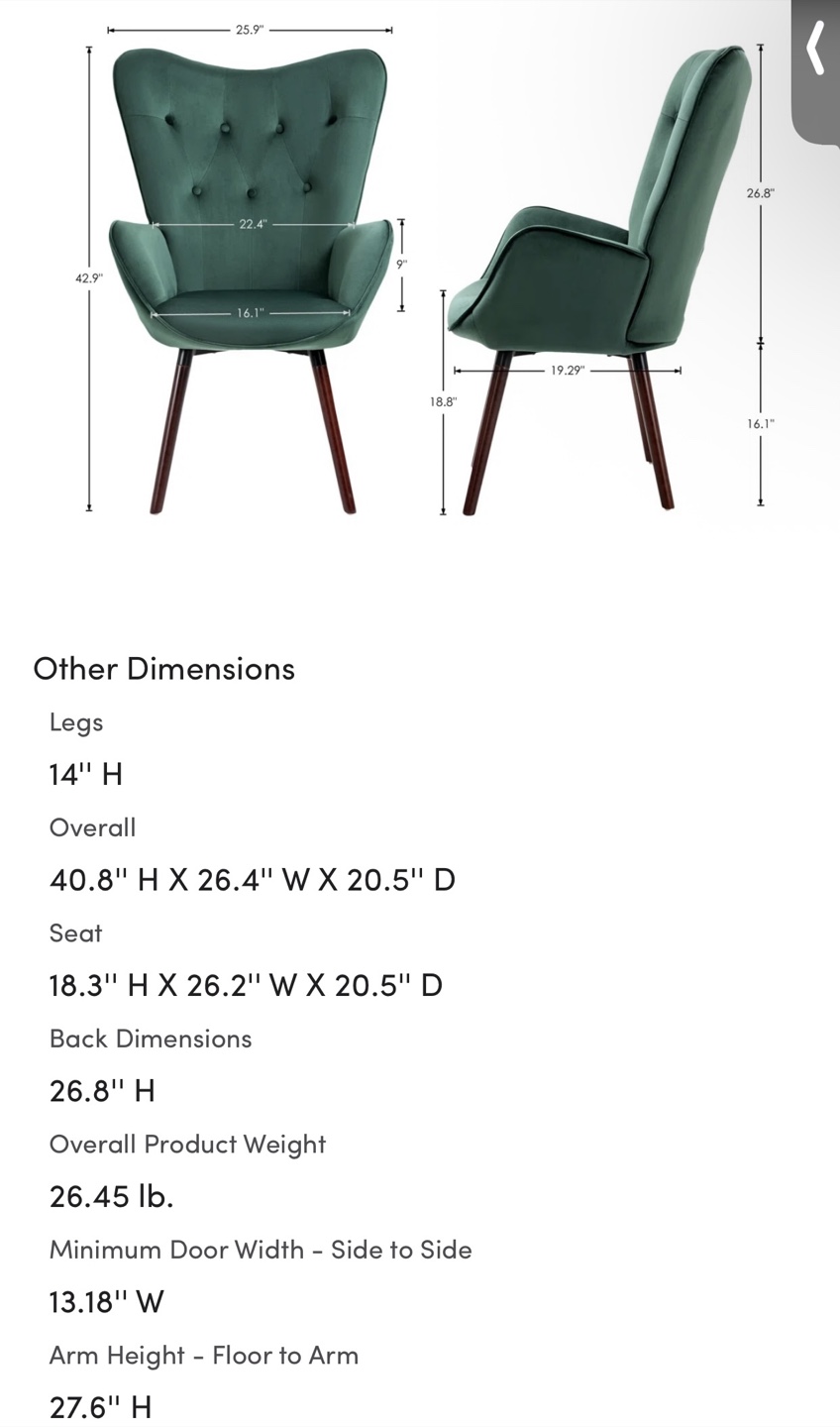 Selling a lovely accent chair! This is a Wade Logan Cedrica 26.4" wide tufted velvet accent chair. It's in great shape and would look great in any living space.