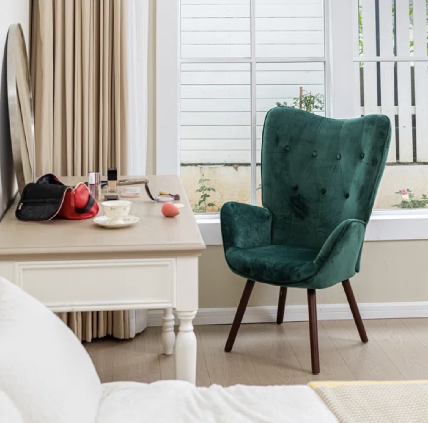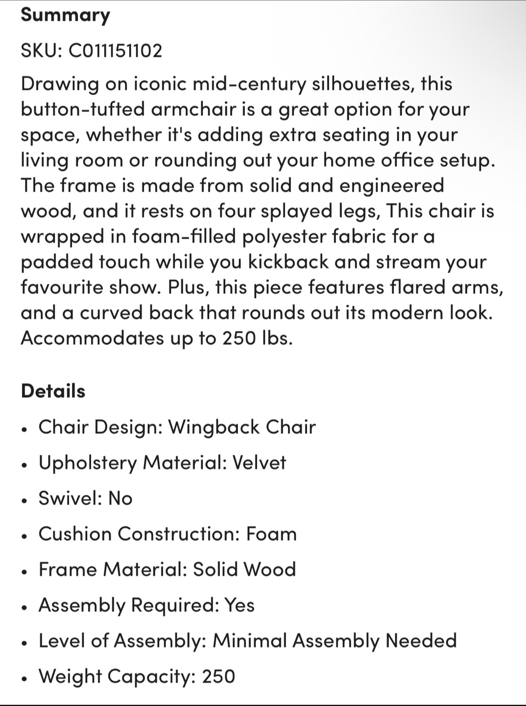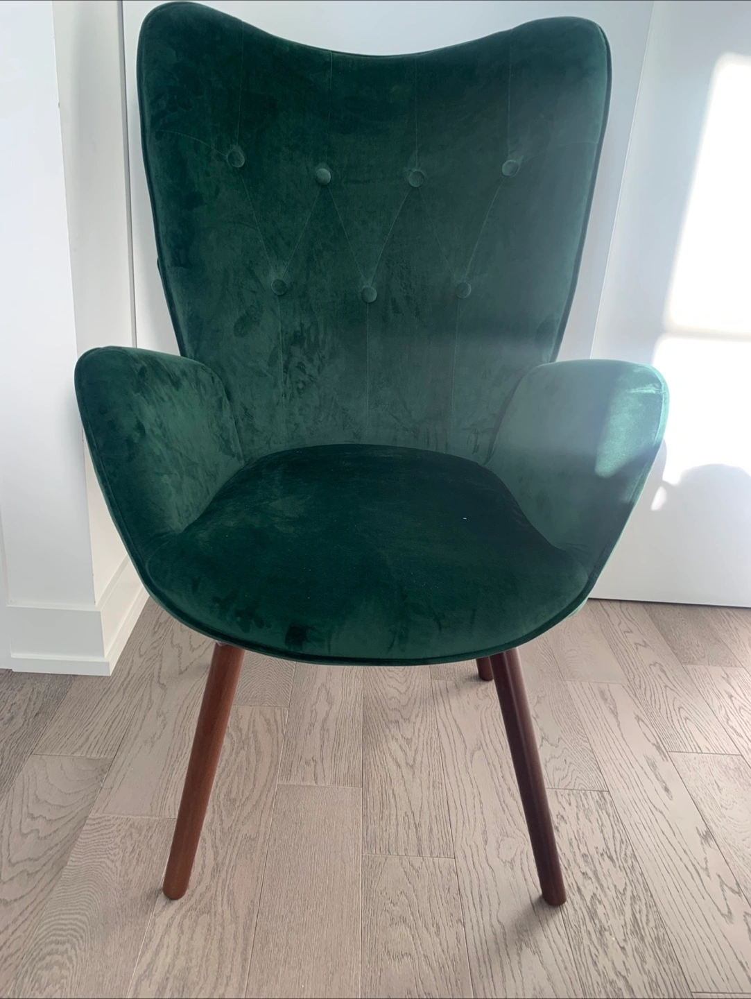 Selling a lovely accent chair! This is a Wade Logan Cedrica 26.4" wide tufted velvet accent chair. It's in great shape and would look great in any living space.