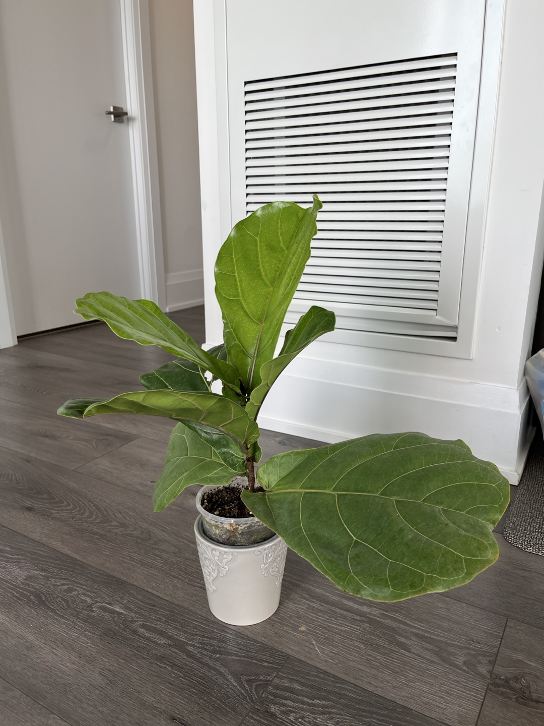 Fiddle leaf figs can be picky with water. This setup keeps moisture balanced for happy, steady growth.