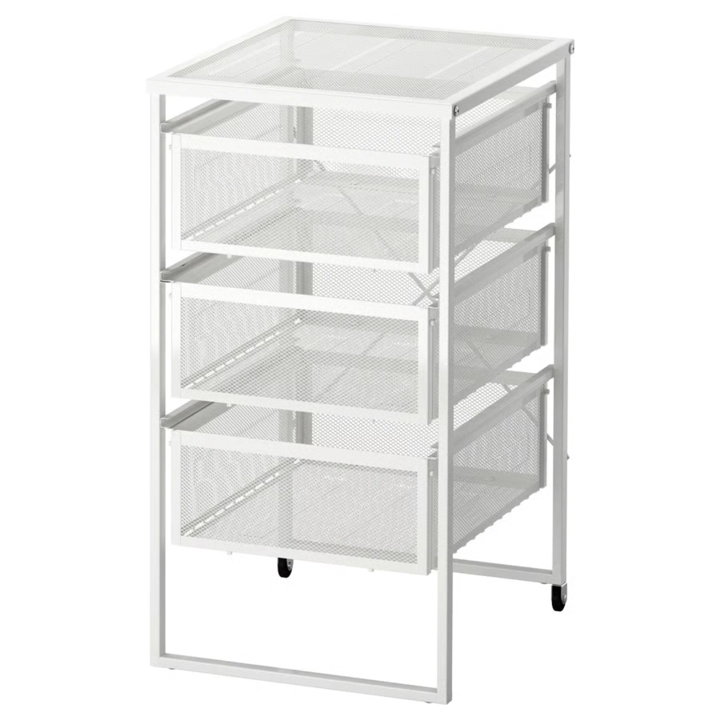 This white drawer unit is perfect for adding some extra storage to your space. It has three mesh drawers and is on casters, so it's easy to move around. Great for a small office, craft room, or anywhere you need a little more organization.