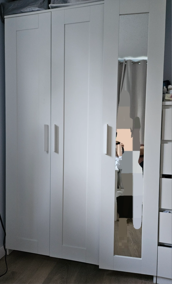 Selling an IKEA Brimnes wardrobe in white. It has 3 doors and a mirror on one door.