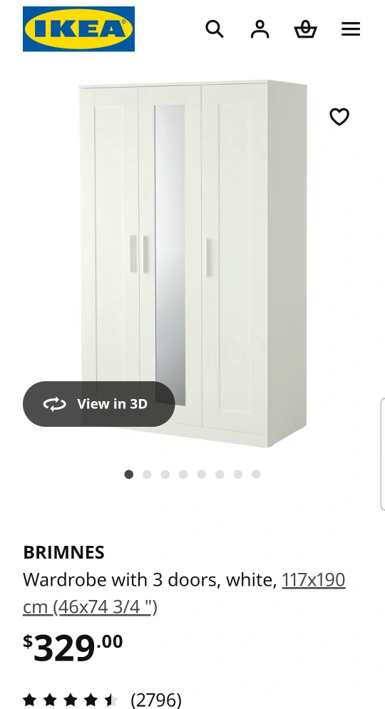 IKEA Brimnes Wardrobe with 3 Doors - White