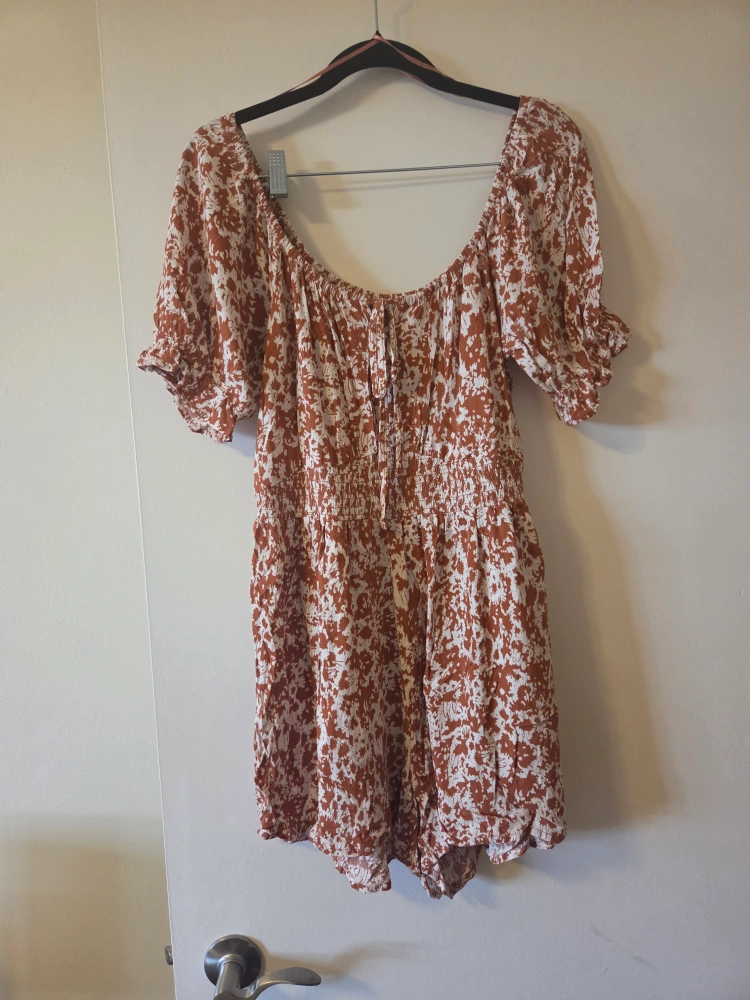 Buy & SellFloral Print Romper - Short SleeveFloral Print Romper - Short Sleeve$5Burnt orange and off white print romper with short frilly capped sleeves. Elasticated waist. ConditionGoodSizeUk Size 14 (US 10)WHERE TO MEETCheck LocationView MapSELLERverifiedElaineFairview1003 reviews0 chats·0 favorites·8 views