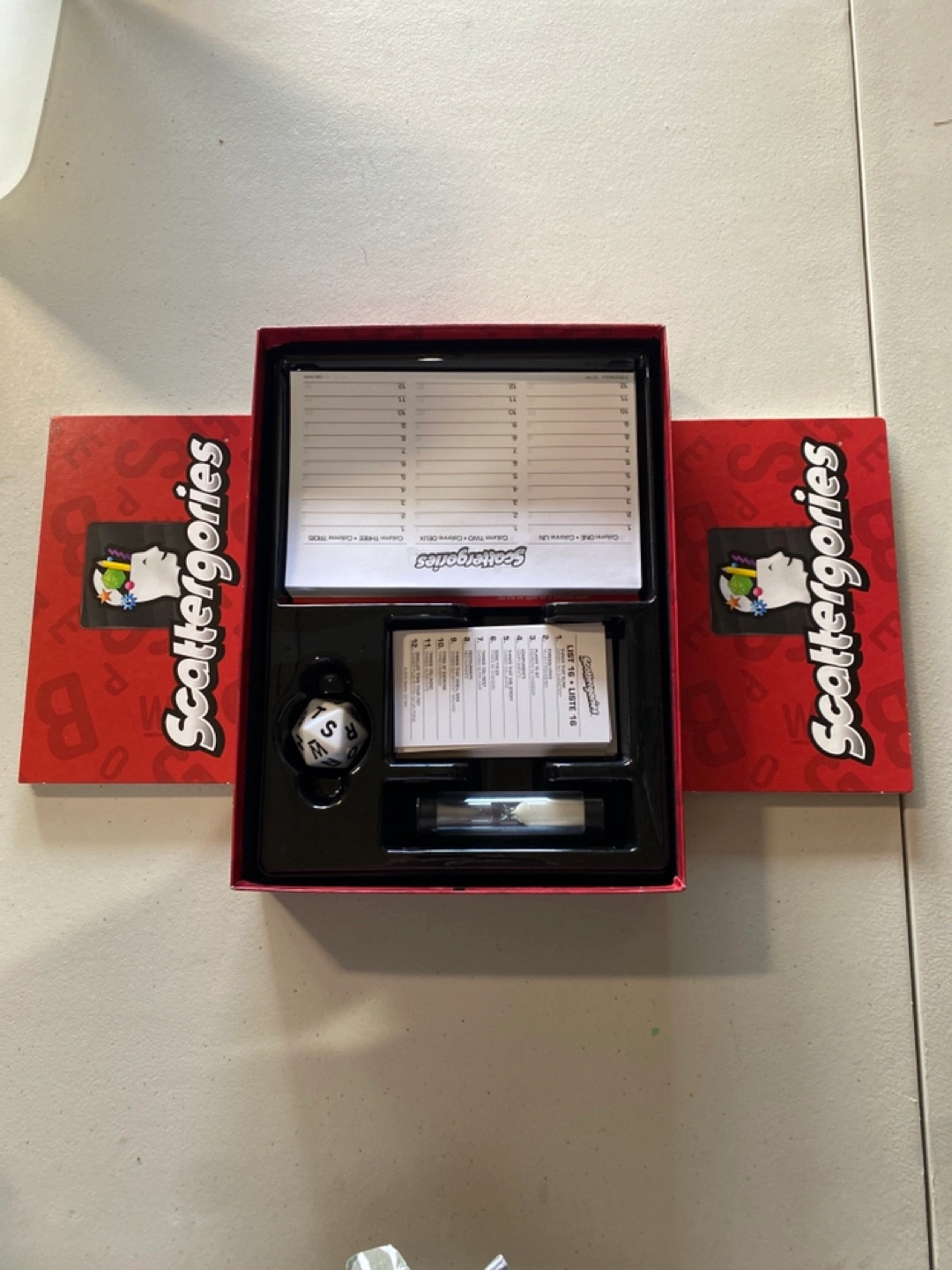 111Selling a Scattergories board game! It's the classic fast-thinking categories game that's fun for ages 12+. Play with 2-6 players or teams. Get ready for some frénétique category fun!