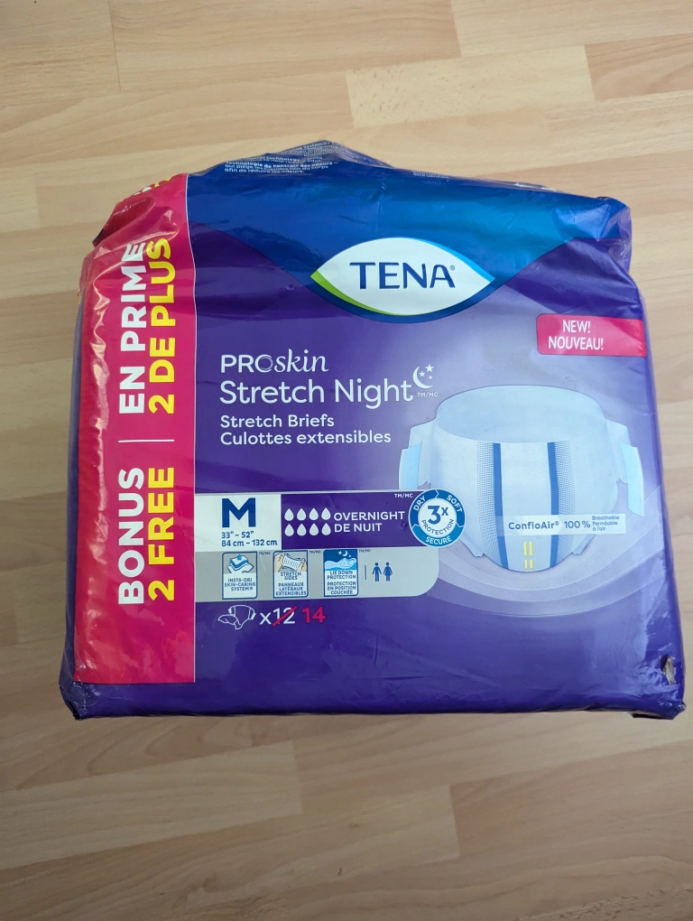 OPENED ONLY ONE MISSING: 13 COUNT TENA ProSkin Stretch Night Stretch Briefs (Overnight) Size M