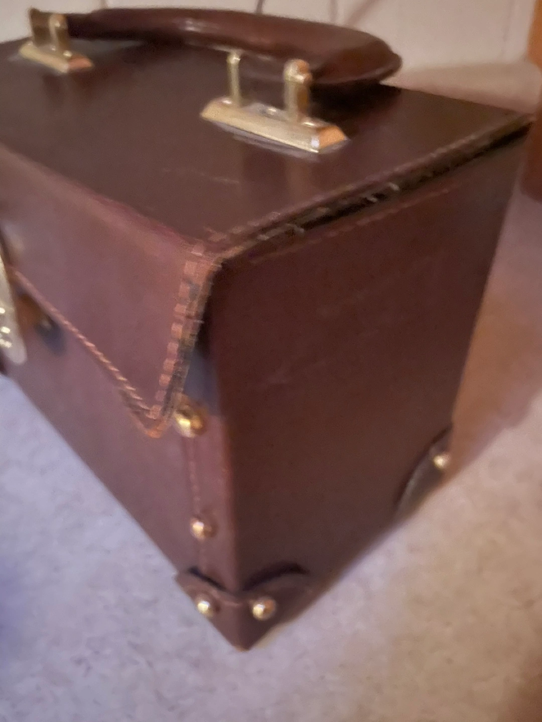 Vintage Brown Leather Train Case