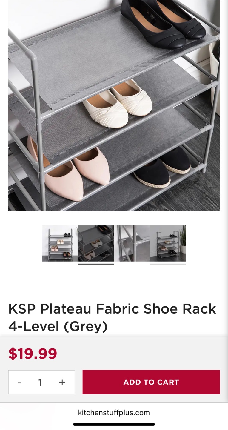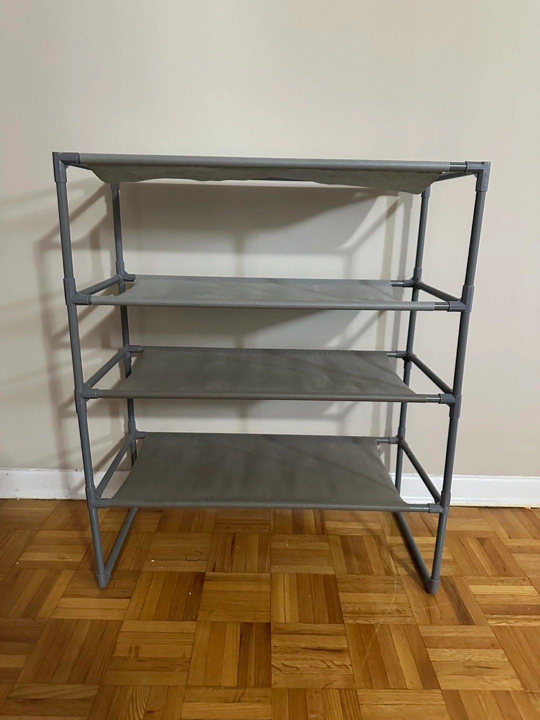 Selling a KSP Plateau fabric shoe rack with 4 levels in grey! It's perfect for organizing your shoes and keeping them off the floor. Originally bought for $19.99 + tax