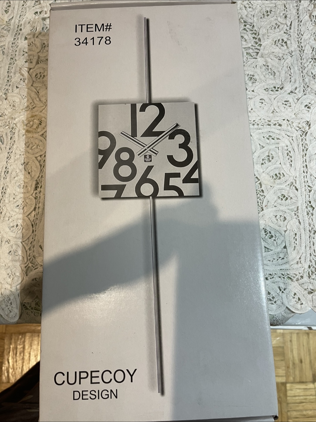 Selling a brand new CUPECOY DESIGN wall clock, still in its original box! The clock features a unique design with bold numbers. Perfect for adding a modern touch to any room