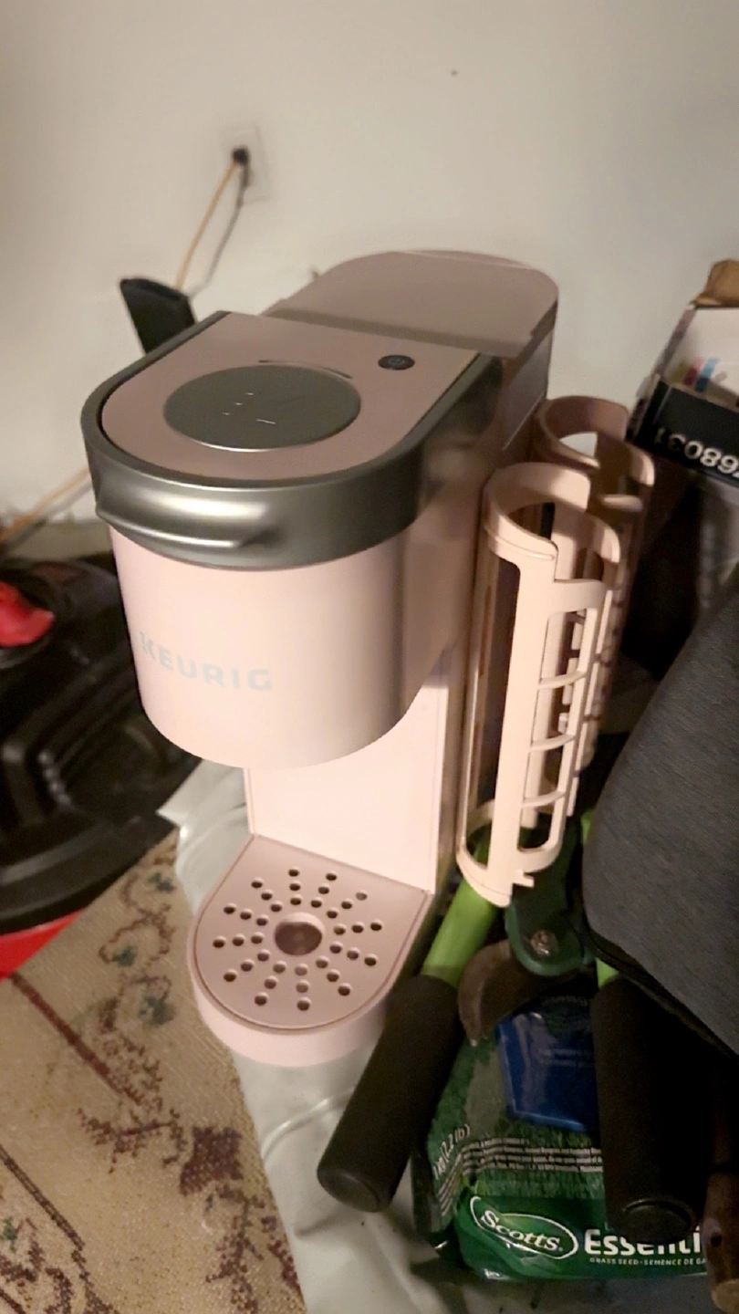 Selling a cute pink Keurig K-Mini single serve coffee maker! It's super compact and perfect for small spaces.