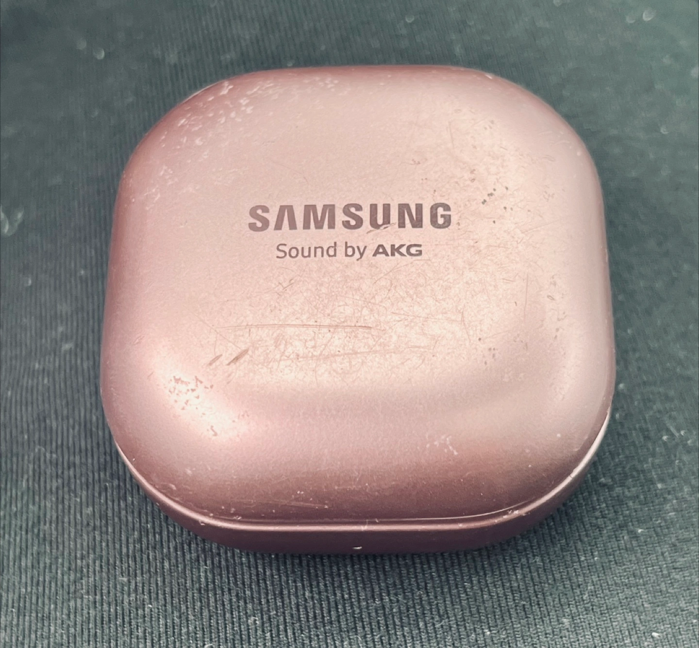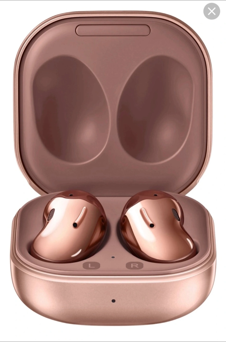 Selling a pair of Samsung Galaxy Buds Live in Rose Gold! These earbuds are in great condition and come in their original case. They are known for their comfortable fit and unique design. Enjoy rich sound by AKG in these stylish earbuds!