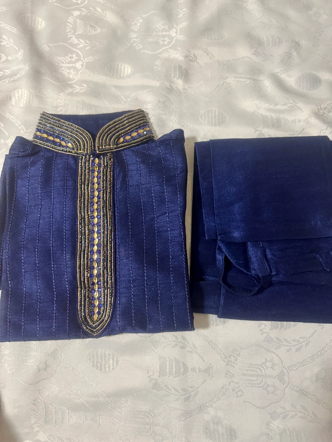 Brand New blue kurta pajama set for boys! It's perfect for special occasions or cultural events. The set includes a kurta (top) and pajama (bottom). The fabric has a nice sheen and the detailing around the collar and front adds a touch of elegance.! Porch pick up cash only. Midland and Lawrence.Scarborough
