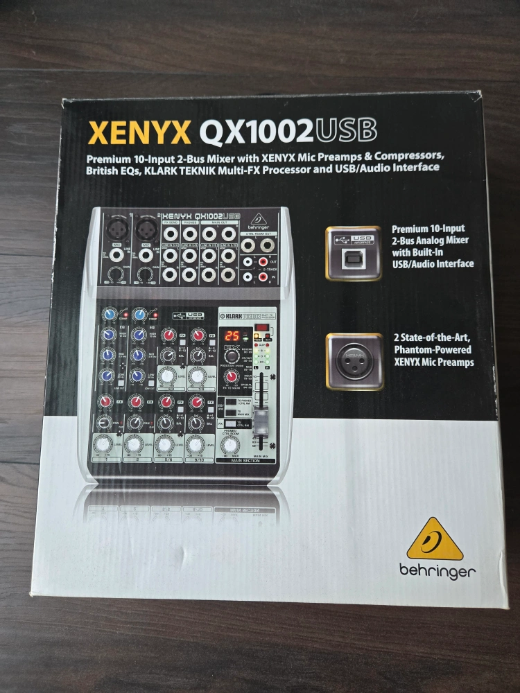 Selling a Behringer Xenyx QX1002USB Premium 10-Input 2-Bus Mixer. It comes with Xenyx Mic Preamps & Compressors, British EQs, KLARK TEKNIK Multi-FX Processor and USB/Audio Interface. It's in excellent condition and includes the original box and manual.