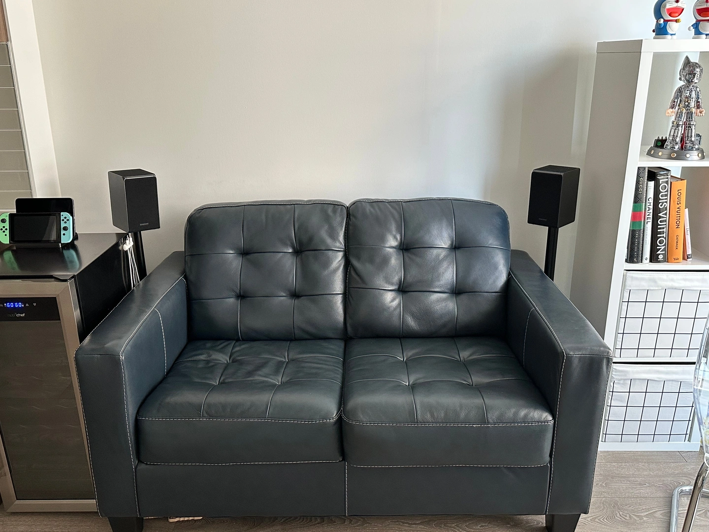 Ashley Dark Blue Leather Loveseat โ Genuine Leather sofa
