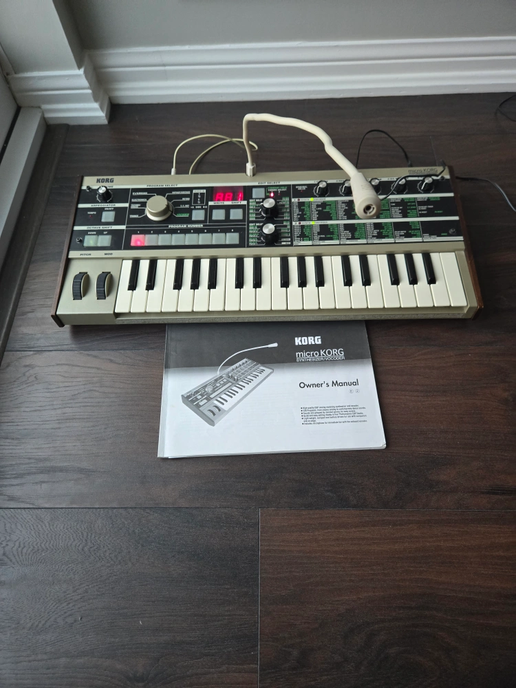 Selling a Korg MicroKorg synthesizer/vocoder in great condition! It's a compact and versatile instrument perfect for both beginners and experienced musicians. Comes with the owner's manual to help you get started. Microphone included and fully functional. This item has been discontinued and is very valuable. Selling to make space in my music room.