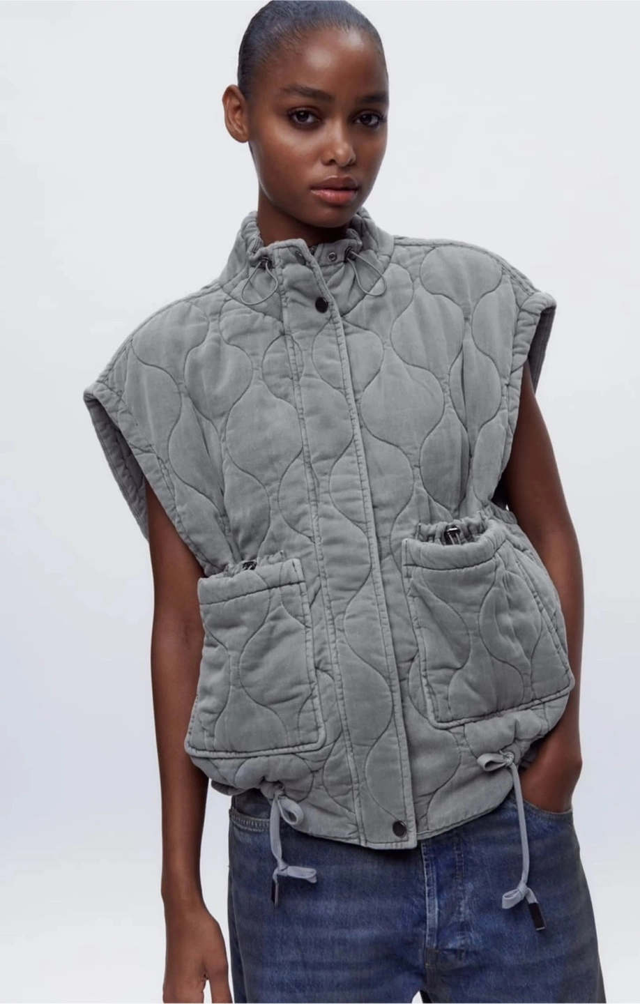 This vest is PILLOWY SOFT! You can wear it oversized or cinch the bottom for a more feminine look (see the picture of the gray vest).