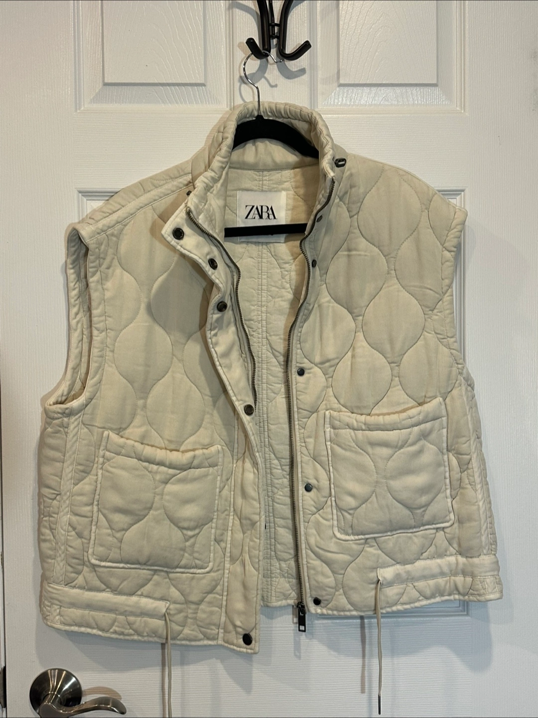 Zara Quilted Oversized Cream Vest - Size XS- LIKE NEW