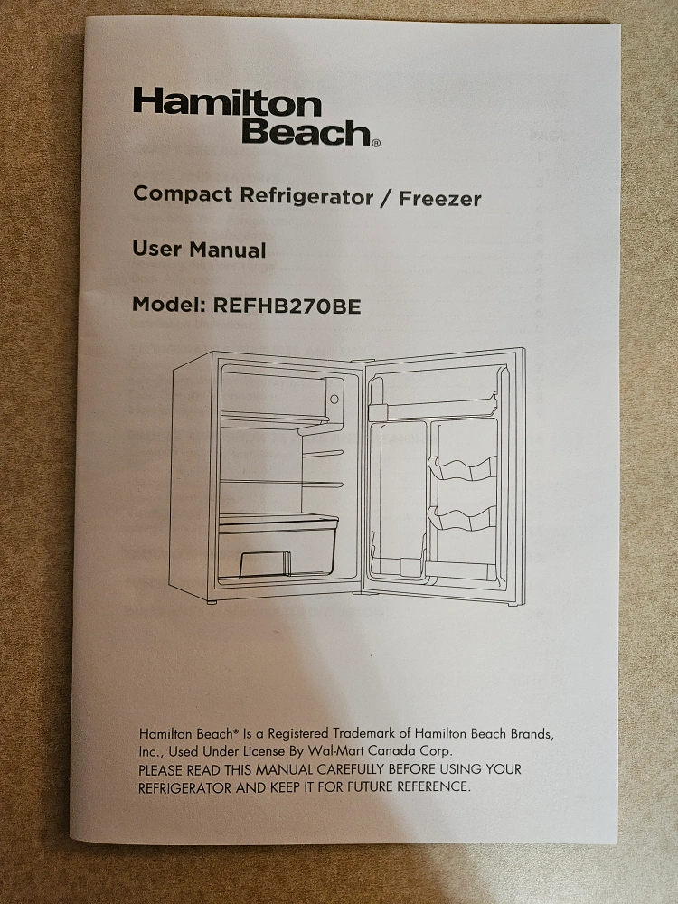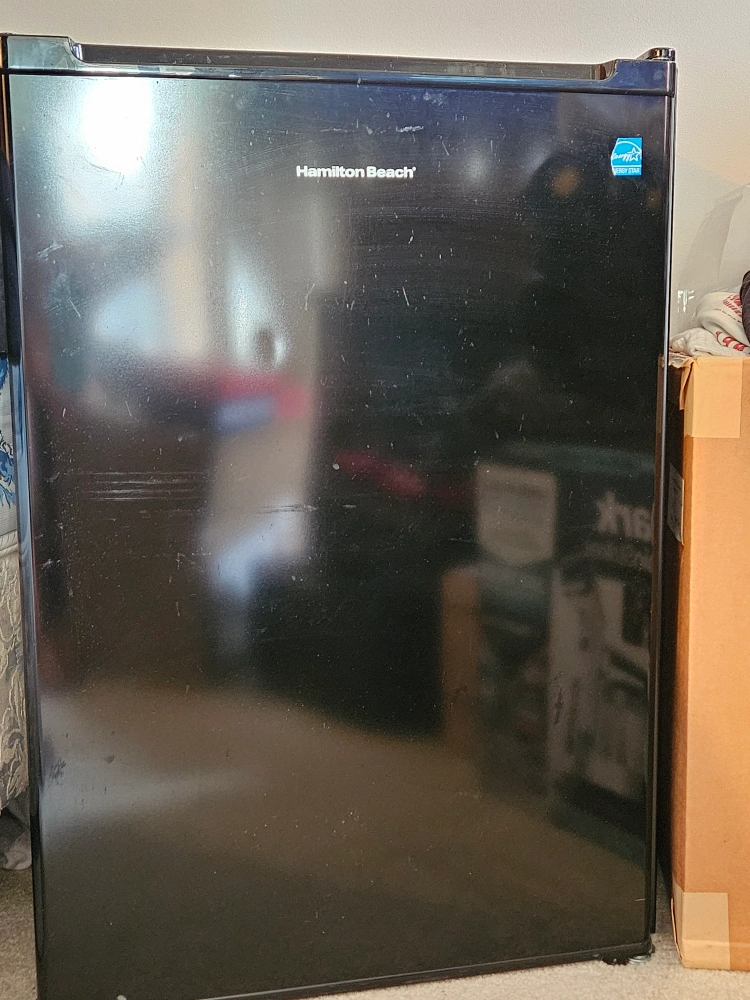 Selling a Hamilton Beach compact refrigerator/freezer, model REFHB270BE. It's in great condition and ready to keep your snacks and drinks cool! Perfect for a dorm room, office, or small apartment. Comes with the user manual.
