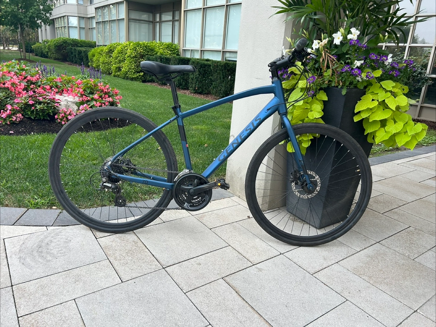 Selling a Genesis hybrid bike! It's in great shape and ready for some new adventures. The bike is a nice blue colour and features Shimano components.