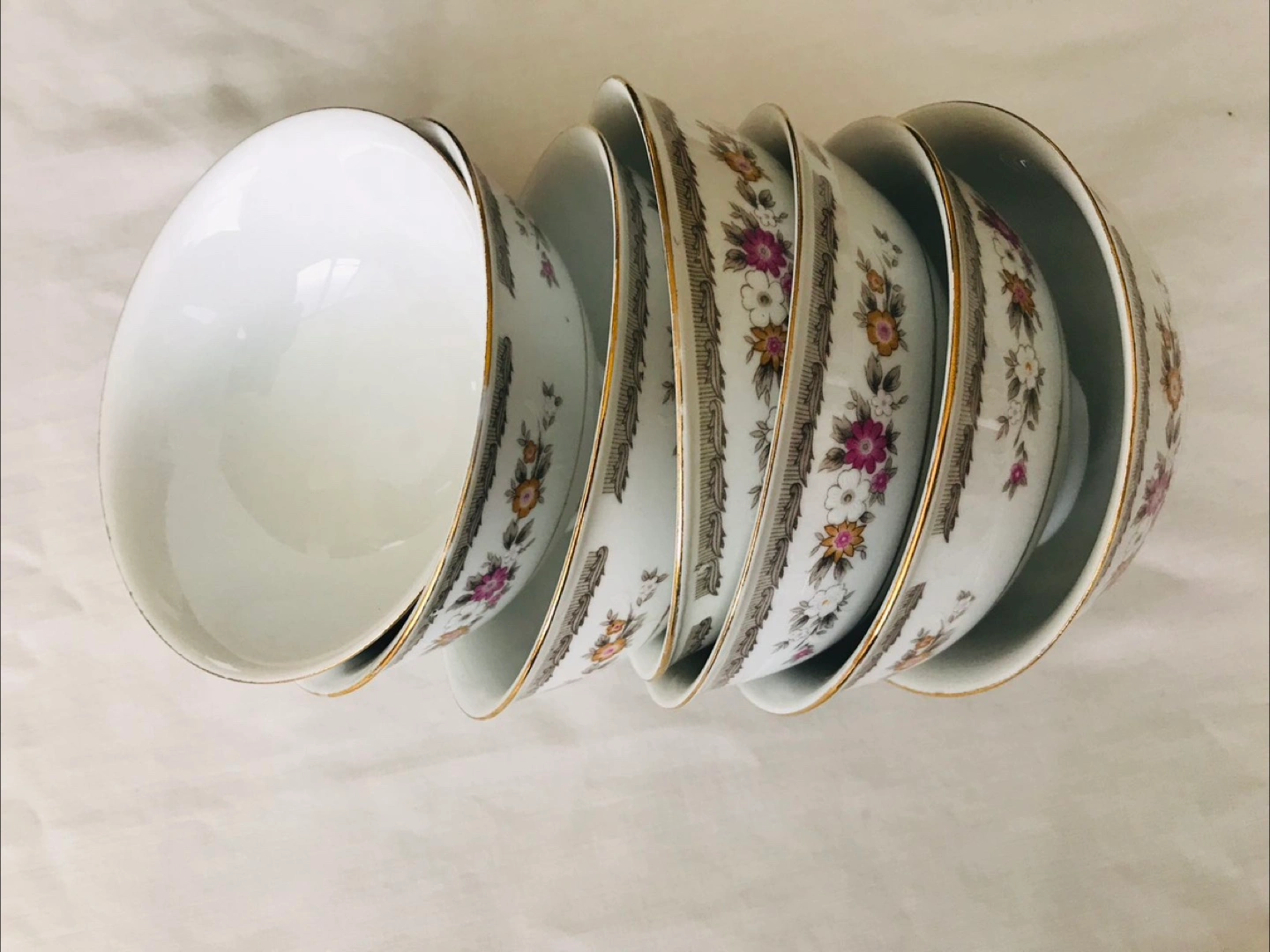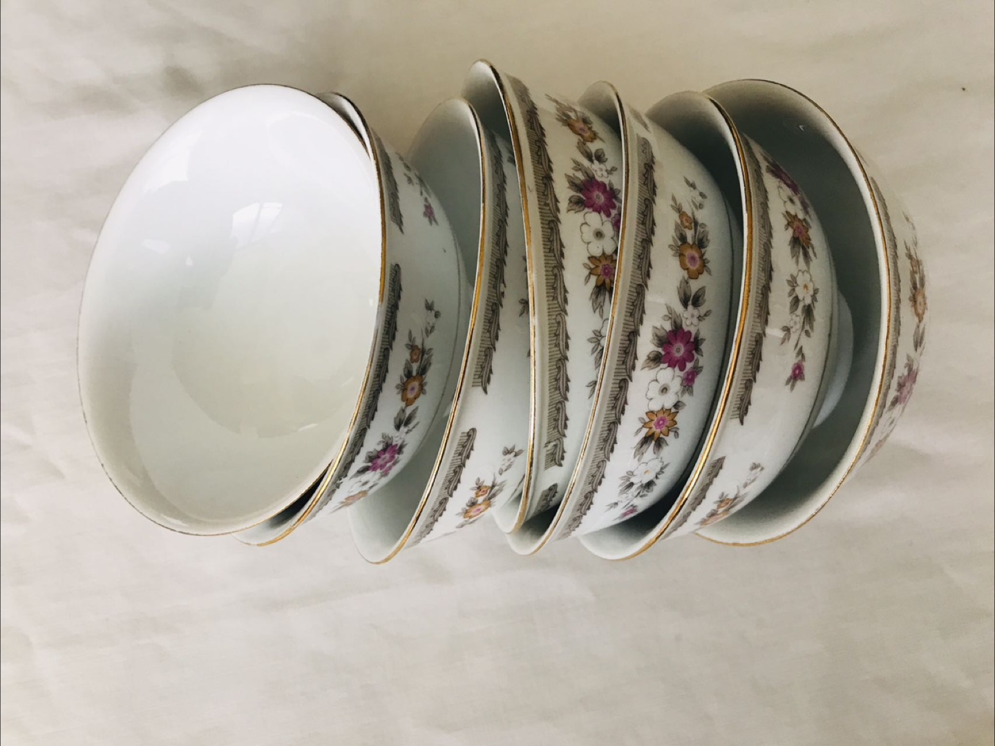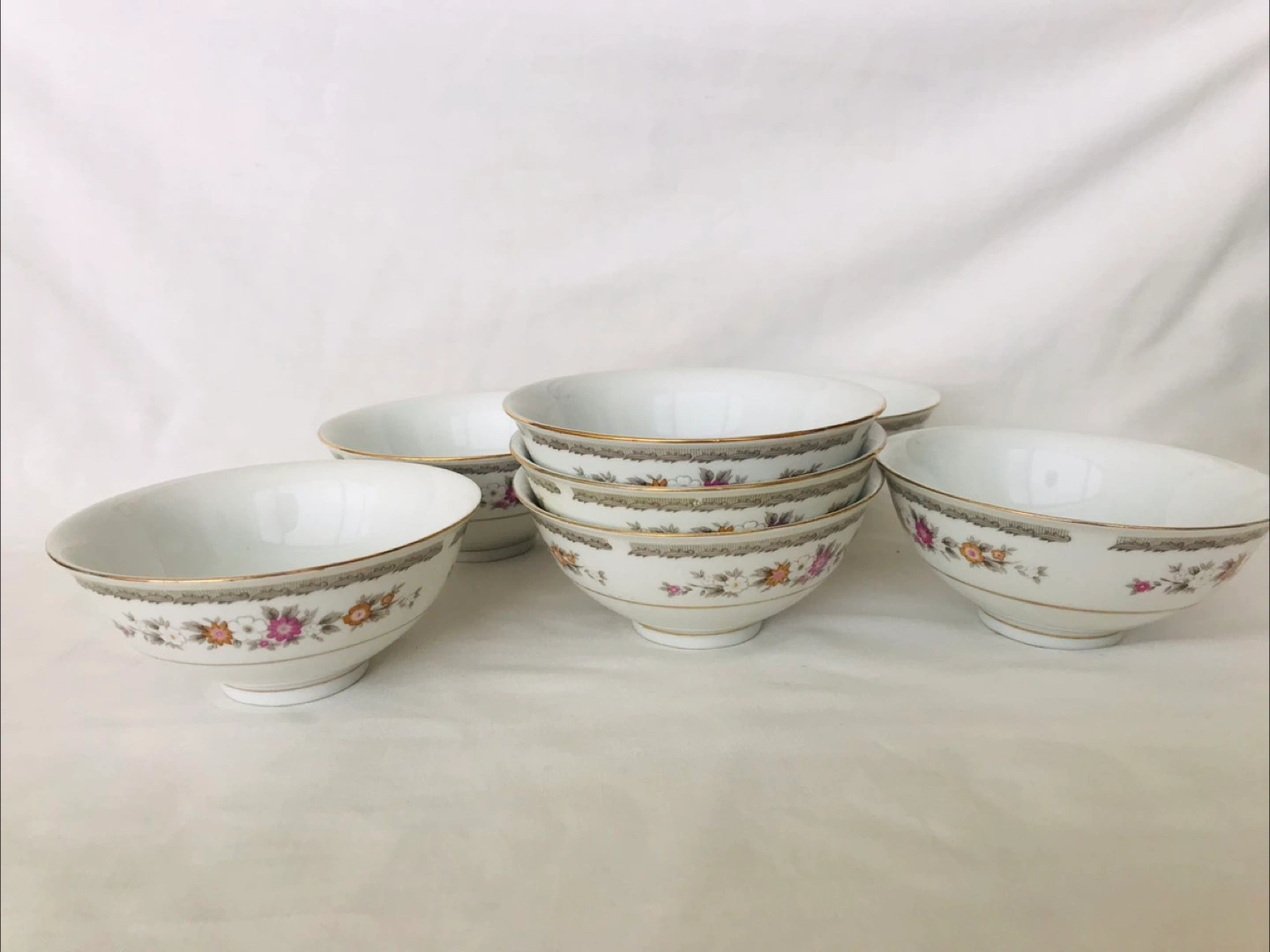 Brand-New Set of 7 Floral Patterned Porcelain Bowls