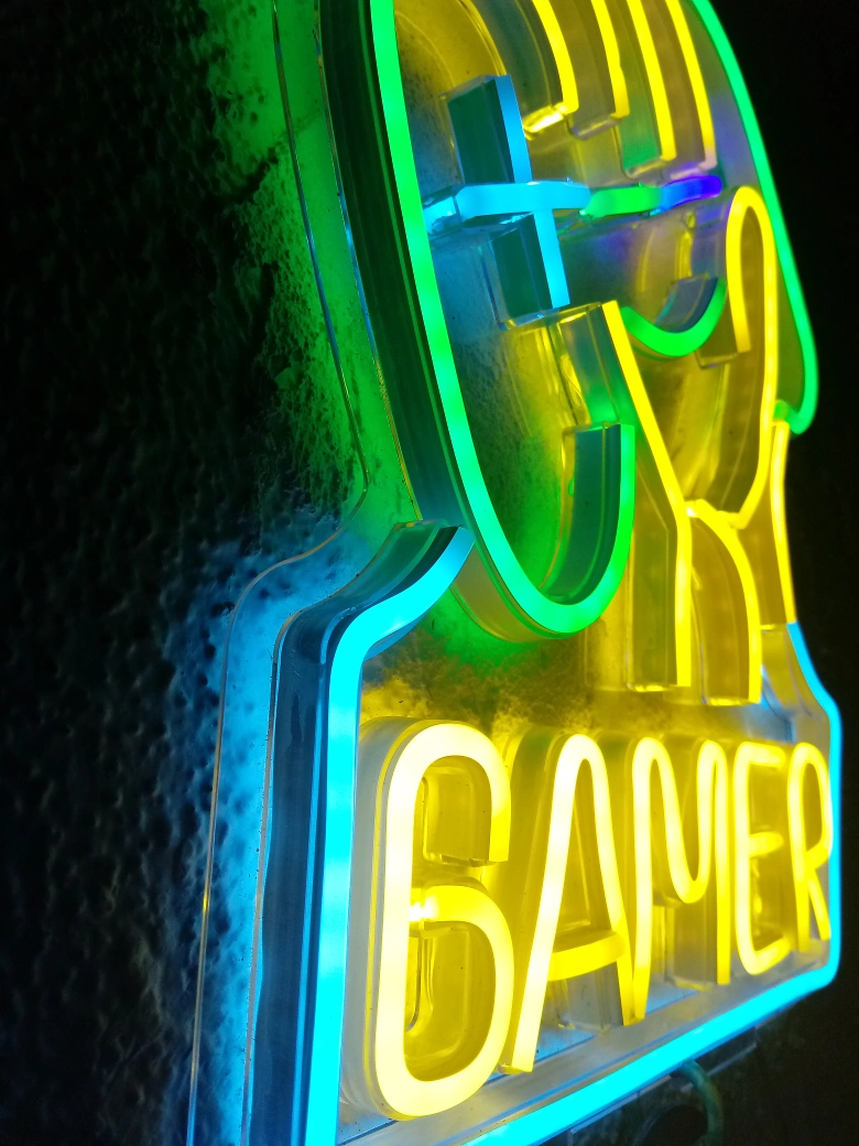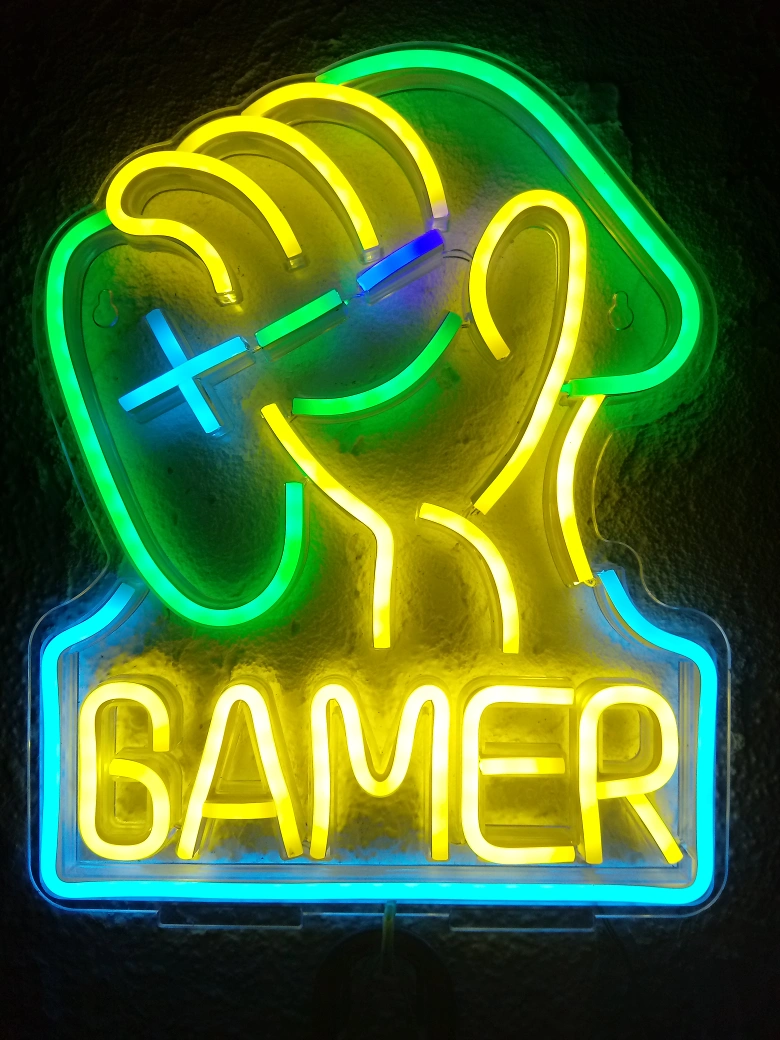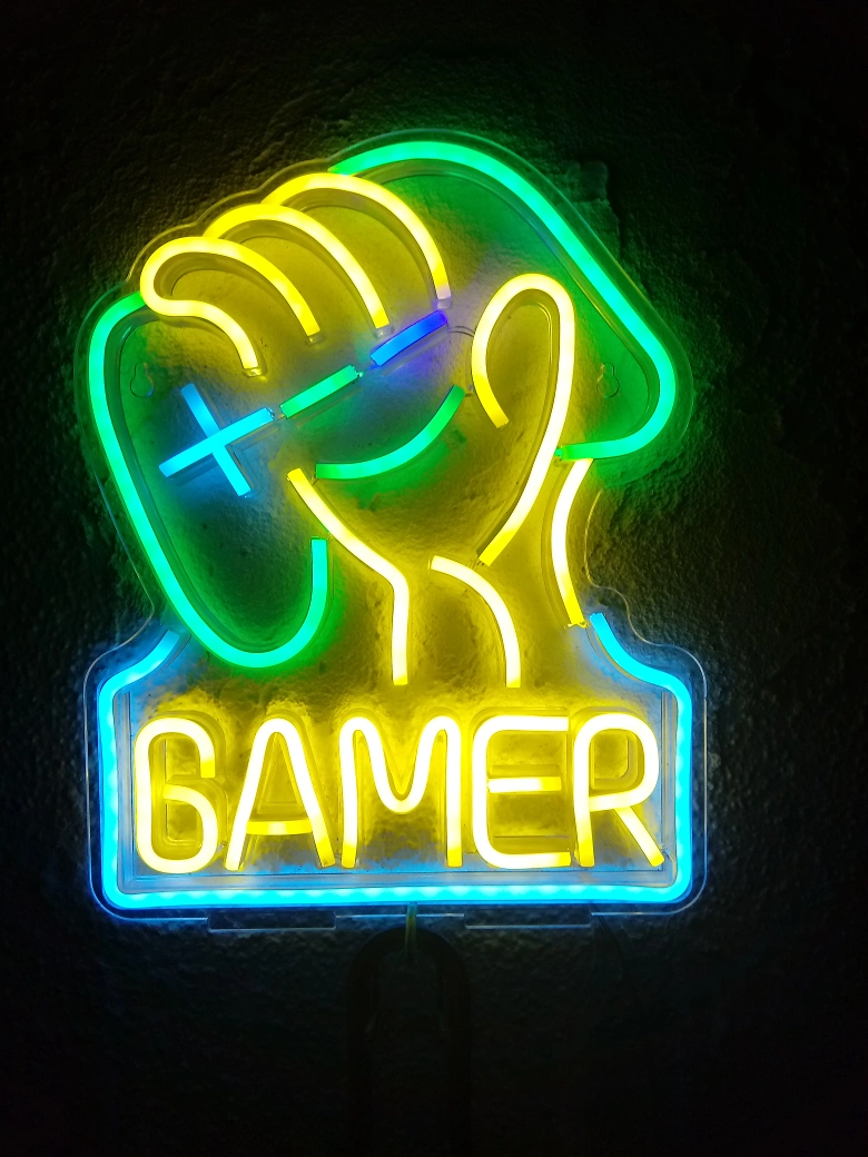Selling a cool neon light sign that says 'GAMER'! It's in great shape and would look awesome in a gaming room or any space where you want to add a bit of fun lighting