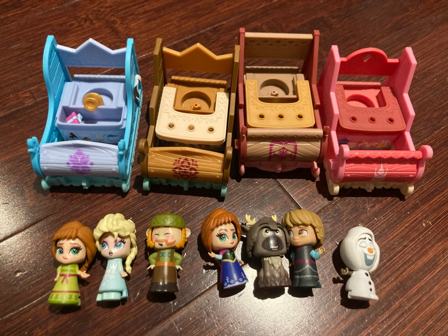 Selling a Disney Frozen 2 Twirlabouts Surprise Celebration Playset! It includes 7 dolls (including two extra characters) and 4 convertible sleds. It's a great toy for kids aged 3 and up!