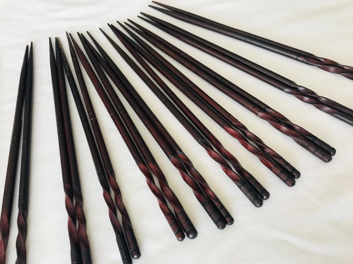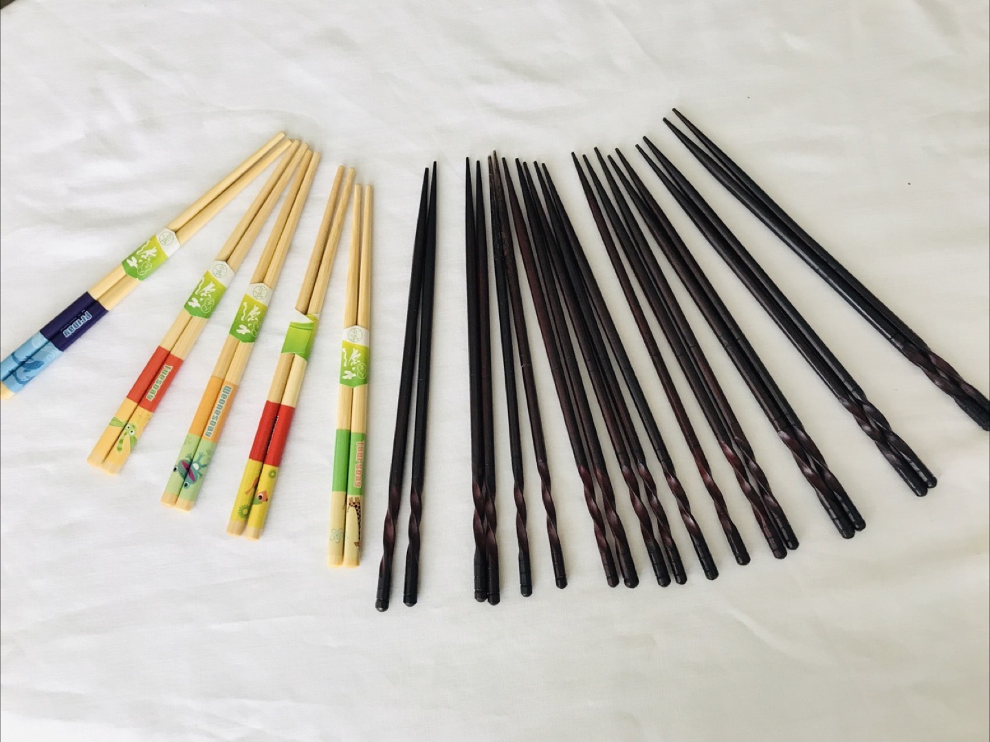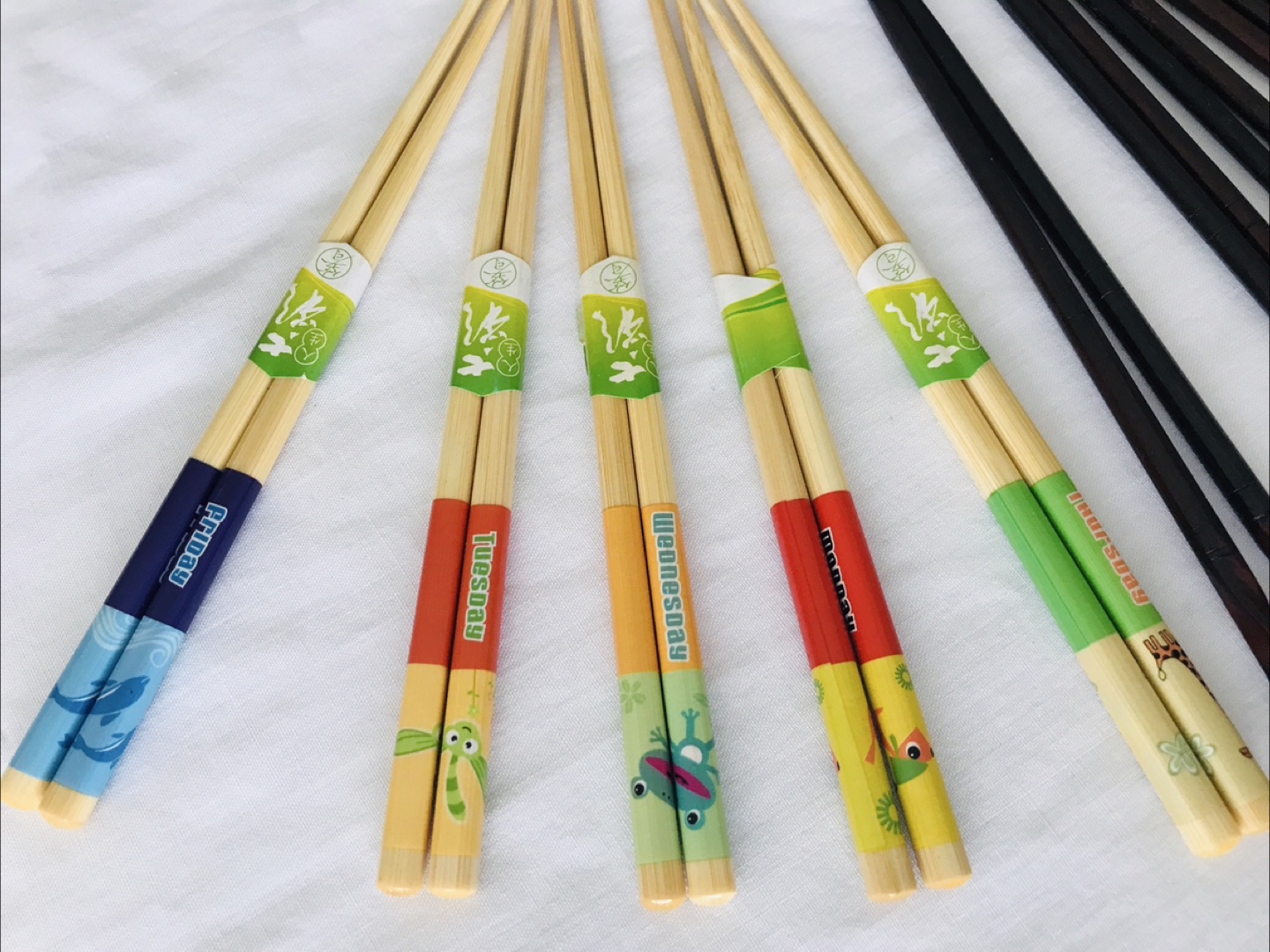 There are wooden chopsticks with colourful designs, some even labelled with the days of the week. Also included are dark wood chopsticks with a spiral design. Great for everyday use or for adding some variety to your dining table