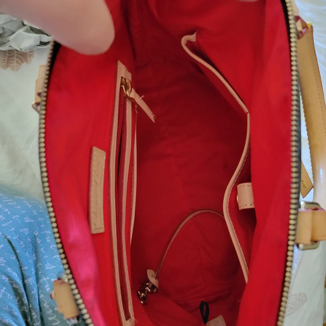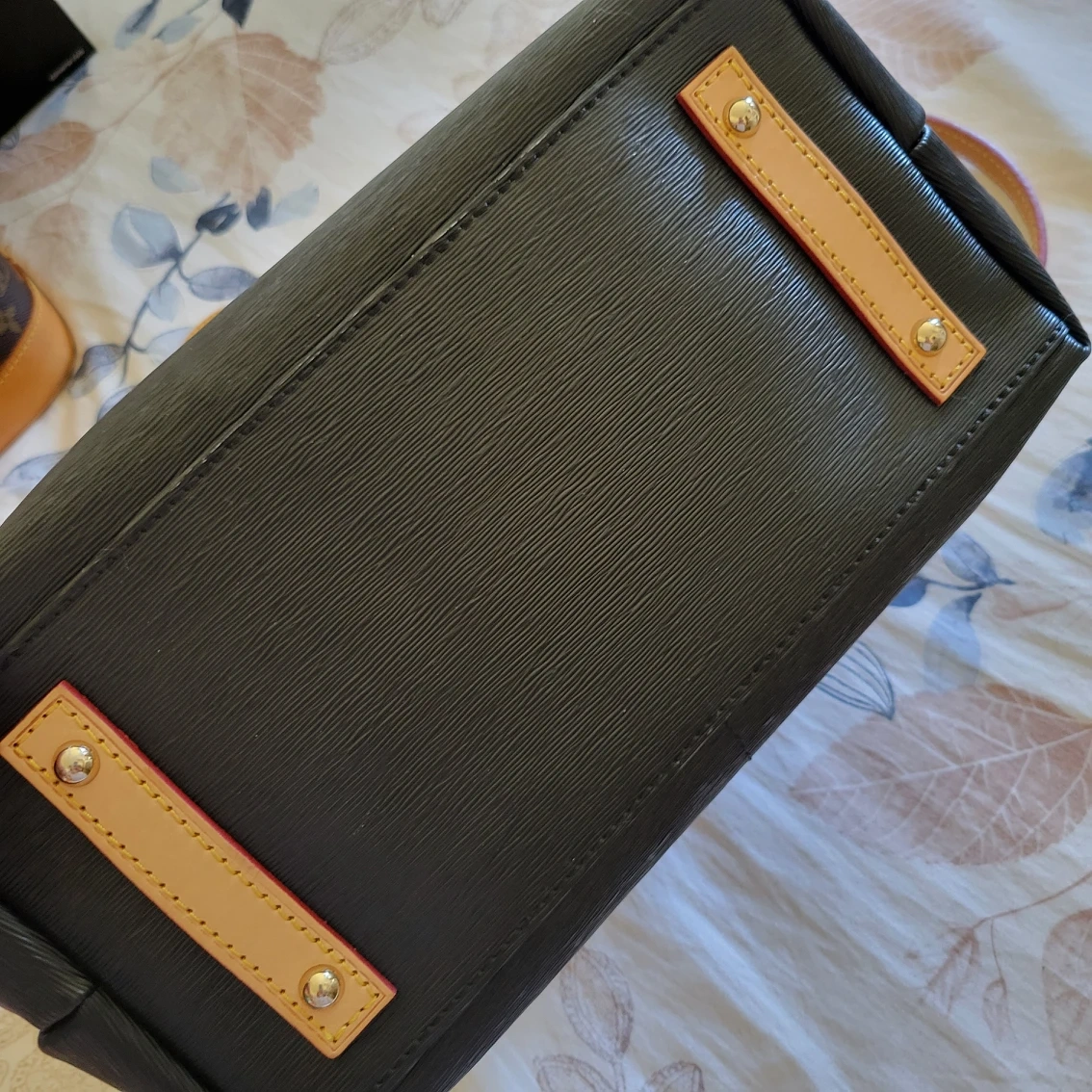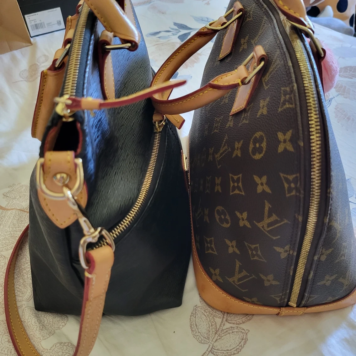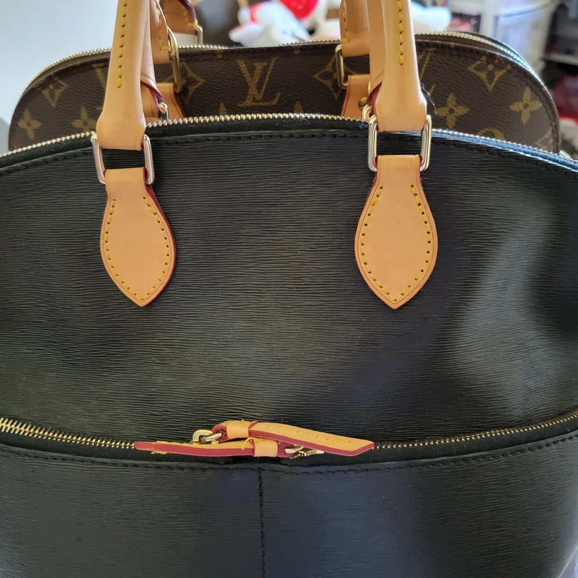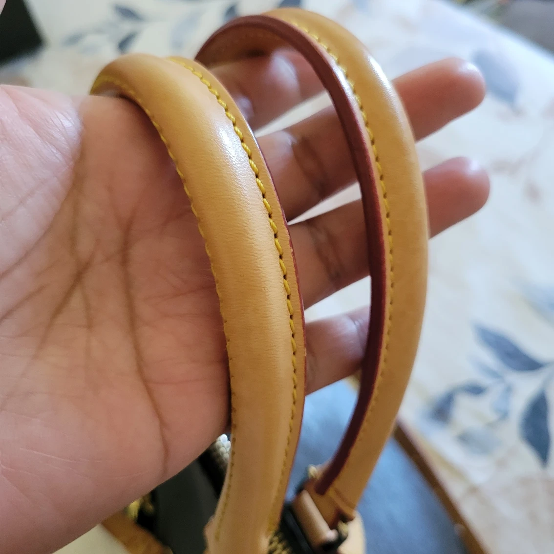 Authentic Vintage bag, one of my favorite, but I need to let go. The leather handle is honey patina. All zippers work well. No scratches or rubs still look new with long leather straps. Inside is clean. a little bit taller to LV alma PM