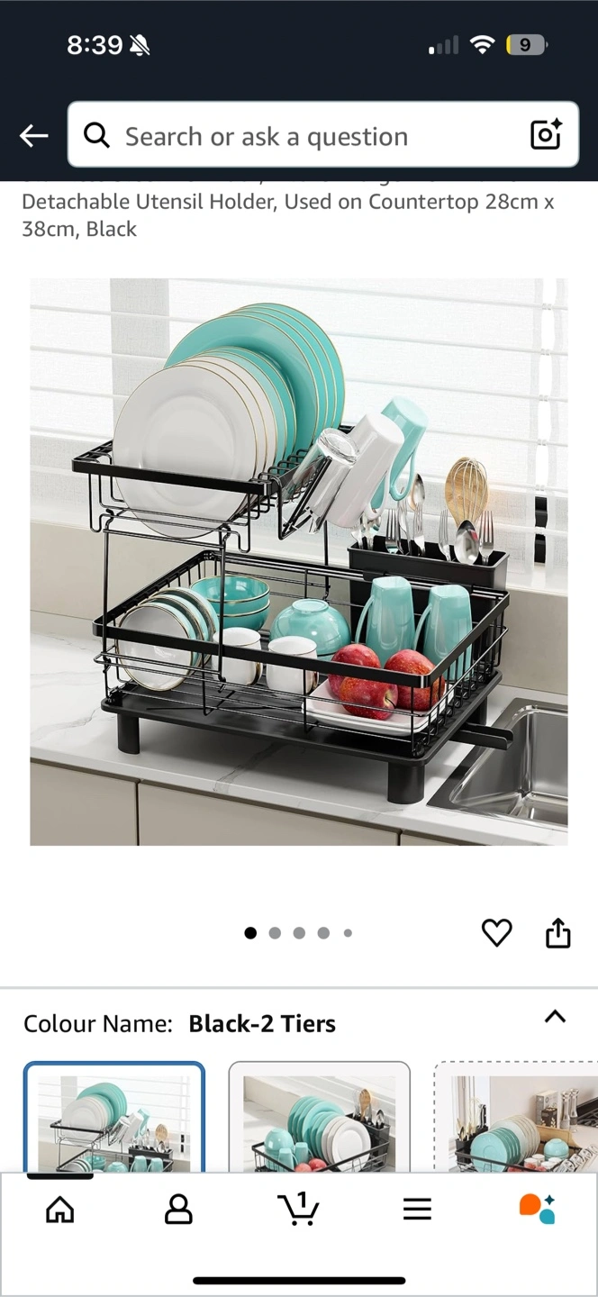 I'm selling a detachable utensil holder in black with two tiers. It's perfect for keeping your countertop organized! It can hold a variety of kitchen items, and it's easy to clean. The dimensions are 28cm x 38cm.