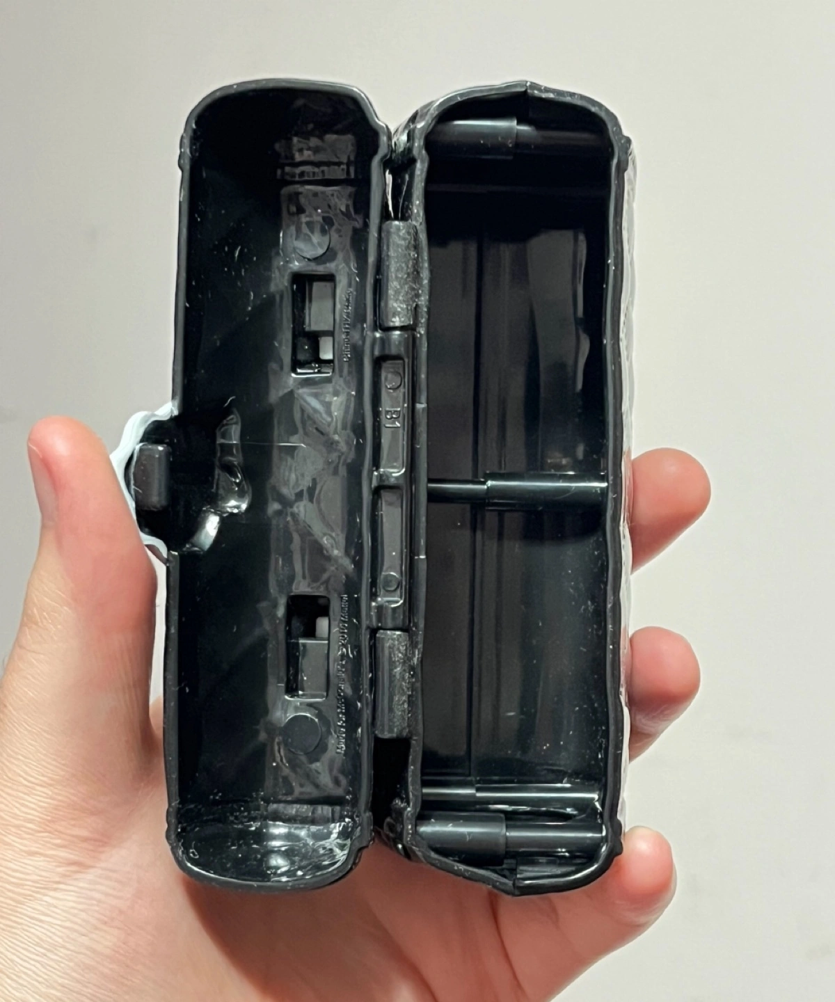 It is quite dusty (so might just need a good wipe down) and there are a few paint chips on the skullette part.