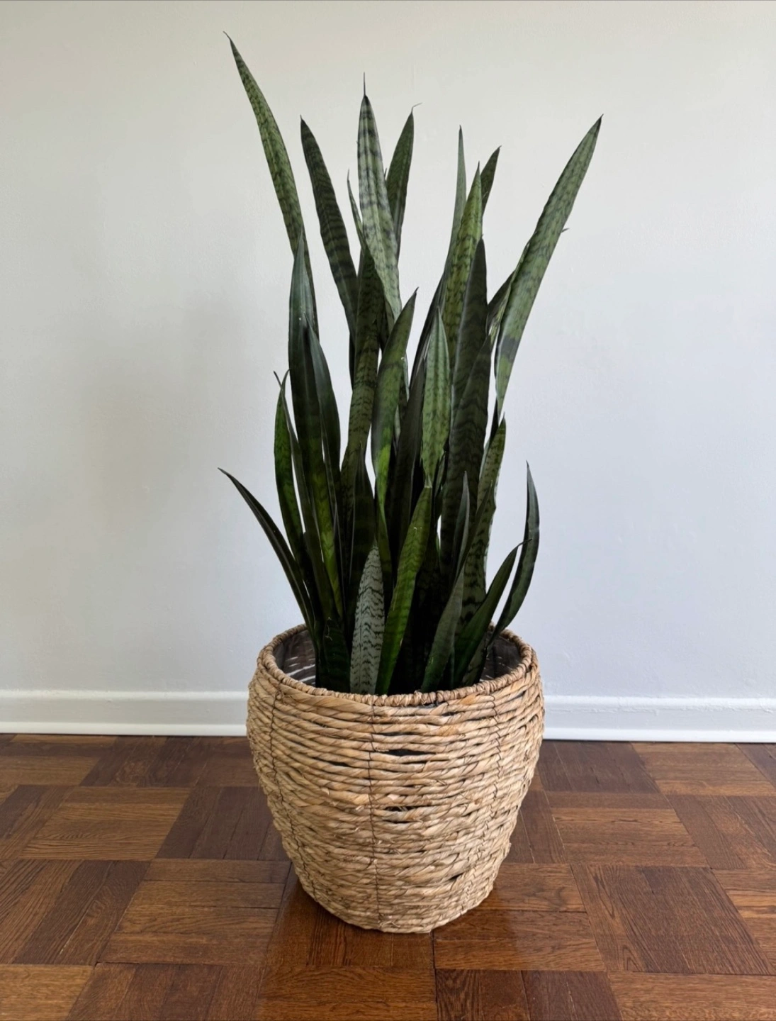 Only the woven basket is for sale. It's great for a houseplant or storage. The basket is a natural woven material, perfect for adding a touch of nature to your home. It has a plastic lining inside.