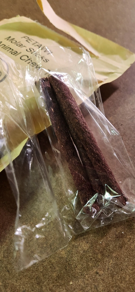 These Petawi rabbit chew sticks are brand new in the packaging! They are made in China and are designed to help your furry friend maintain good dental health. They are made from pollution-free chew planting bases and contain no pesticides.5 pkgs left used one