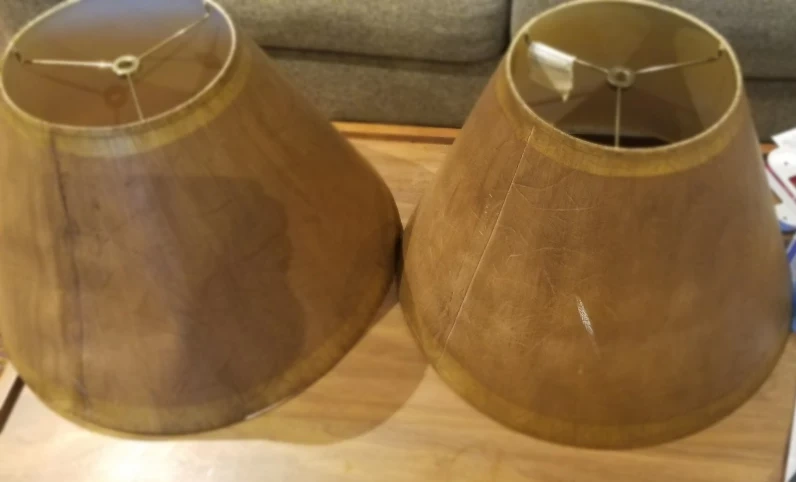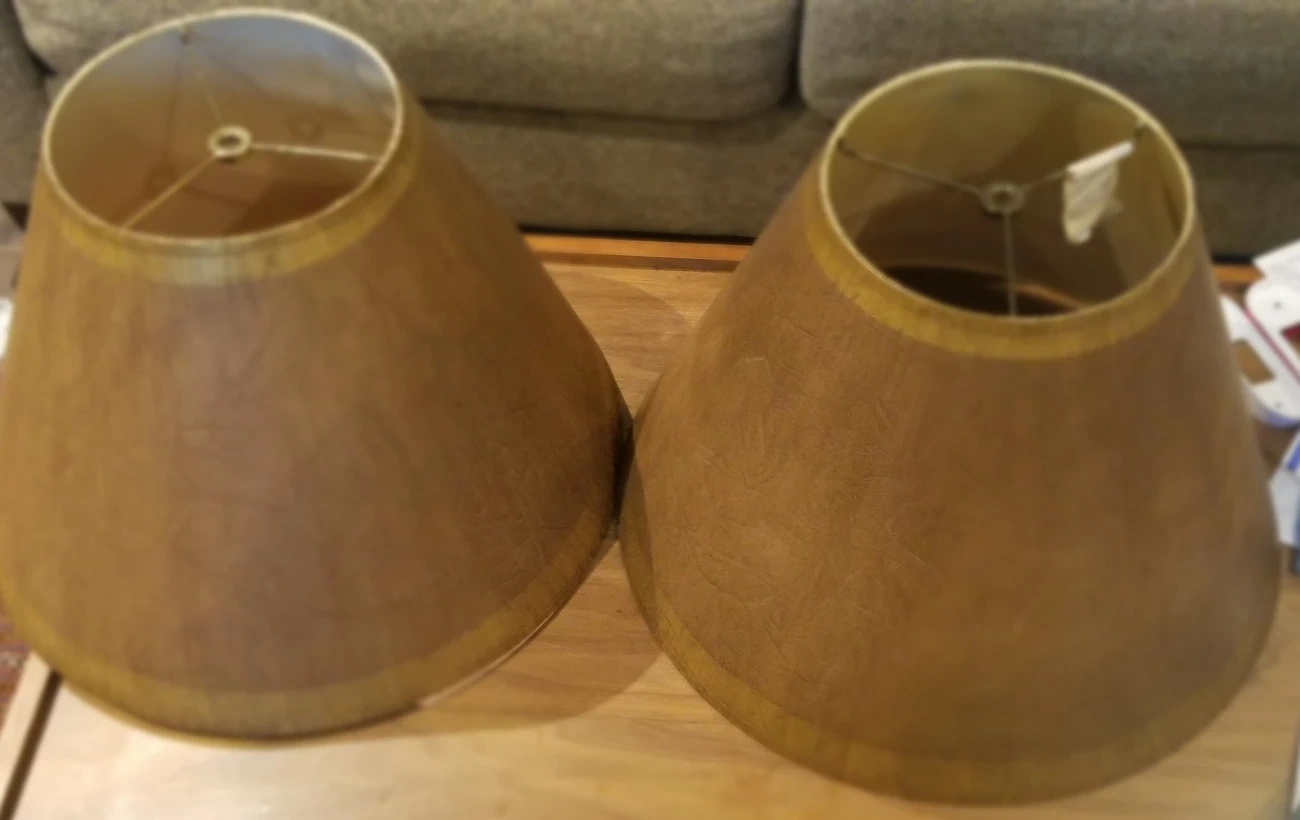 I'm selling a pair of Chandelier Lamp Shades. They are antique gold and hardback. The shade is 6 inches, 3 x 6 x 4.5.