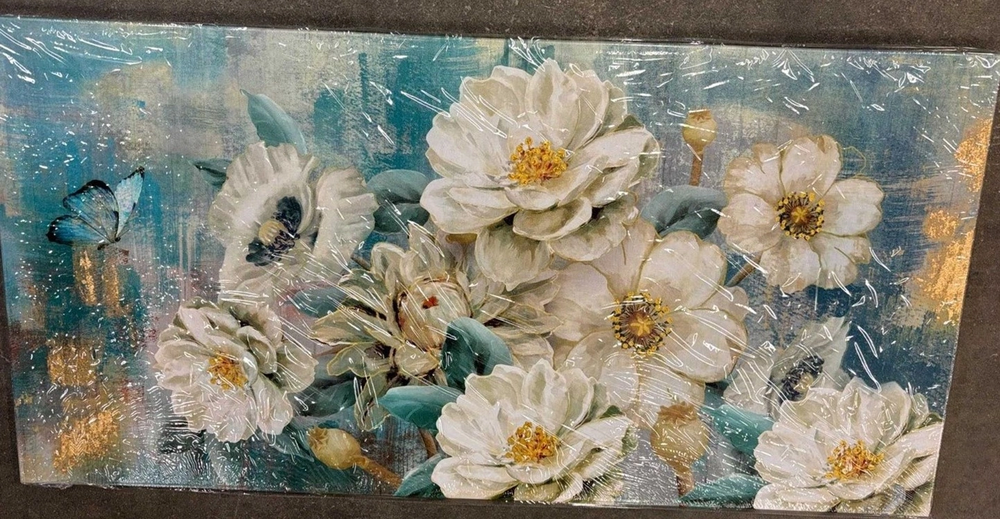 Teal & Gold Floral Canvas Art New, sealed. Pickup is in Ajax, close to Harwood Bayly intersection Size: 48" x 24" (120 x 60 cm), large statement piece Hand-painted texture with gold foil accents High-definition waterproof and UV-resistant canvas Vibrant teal, turquoise, and white floral design Perfect for living room, bedroom, office, bathroom, and more Wrapped and ready to hang – gallery style Great as a gift for weddings, birthdays, or housewarmings floral canvas wall art, teal flower painting, turquoise wall decor, modern floral artwork, large canvas painting, textured canvas art, gold foil wall art, elegant flower picture, teal and white artwork, rustic floral wall decor, living room canvas, bedroom wall painting, abstract flower art, home office decor, teal decor for home, 48x24 canvas art, flower canvas print, nature-inspired wall art, watercolor floral canvas, dining room wall decor, bathroom art piece, romantic canvas painting, hand-painted textured art, teal gold artwork