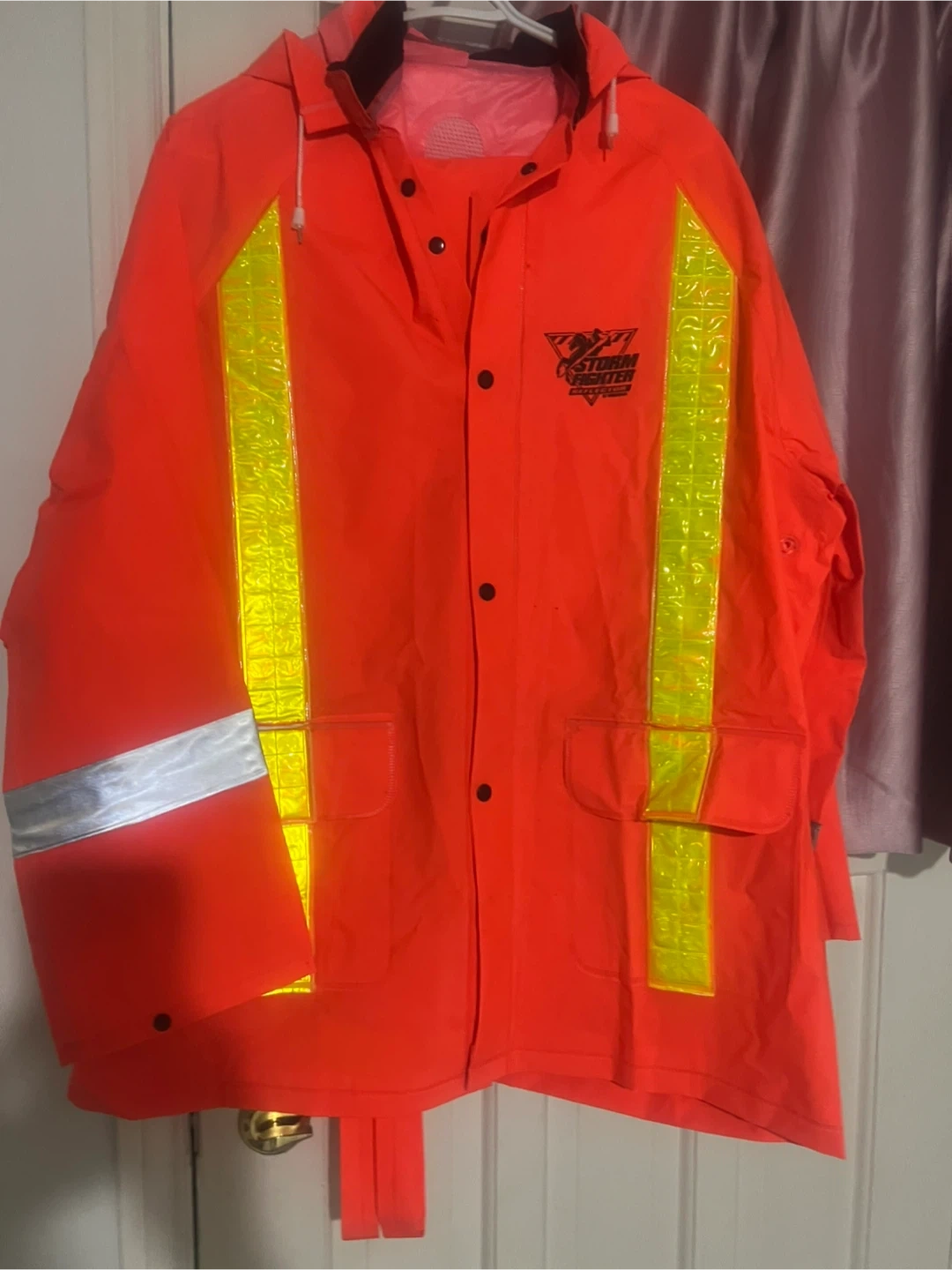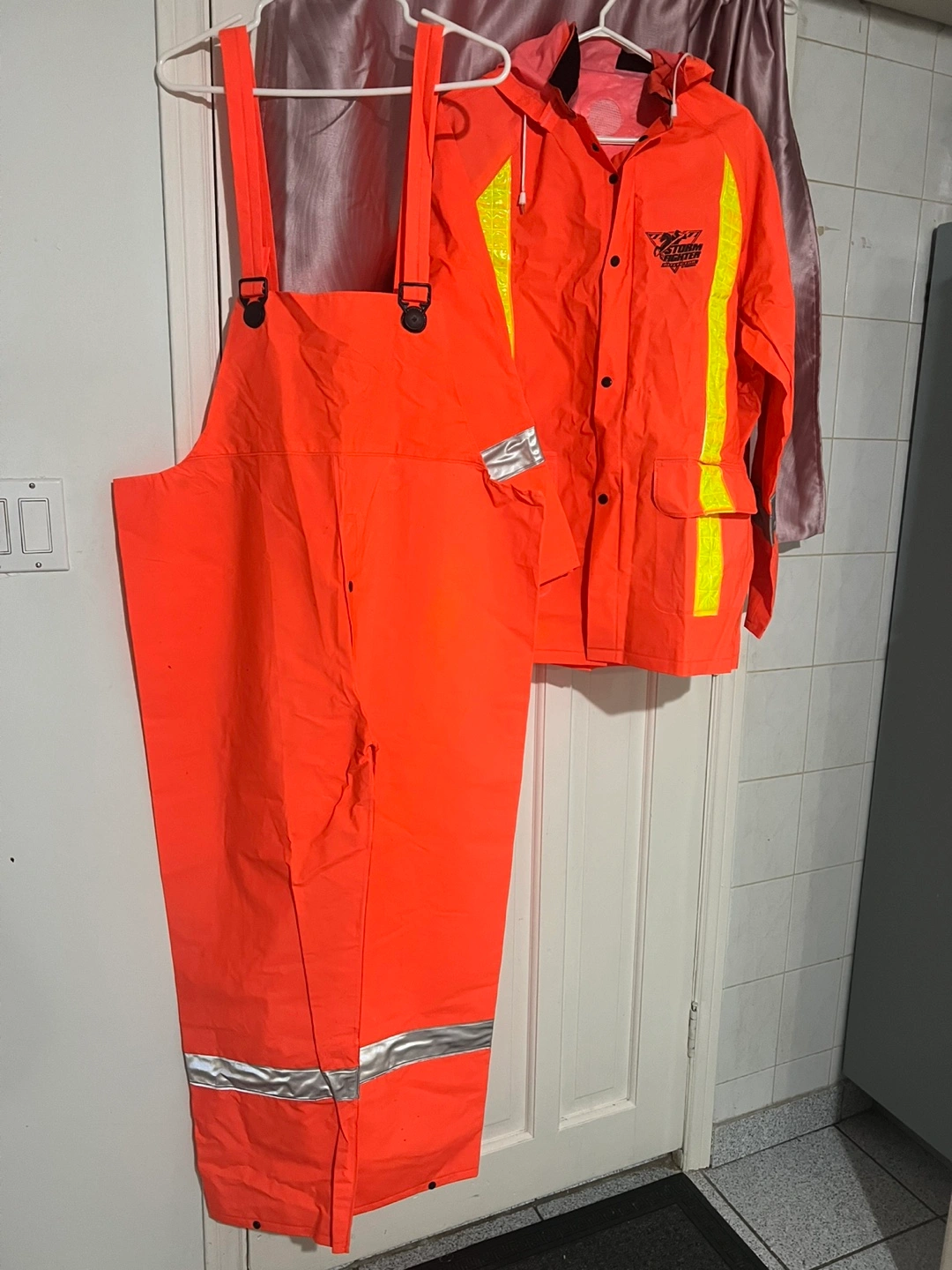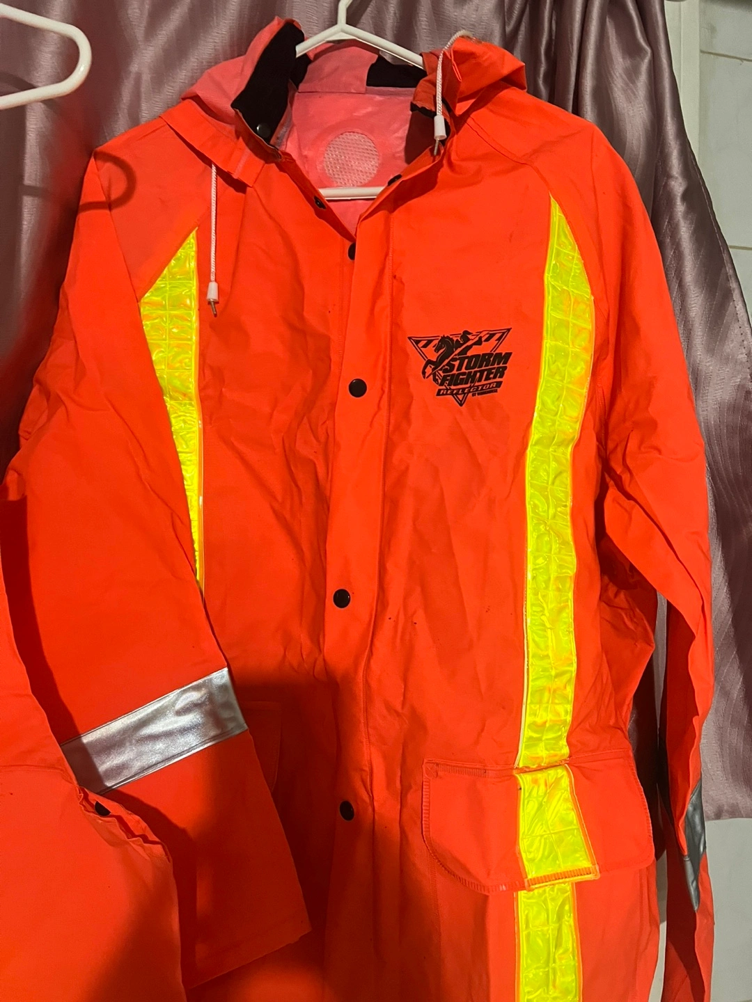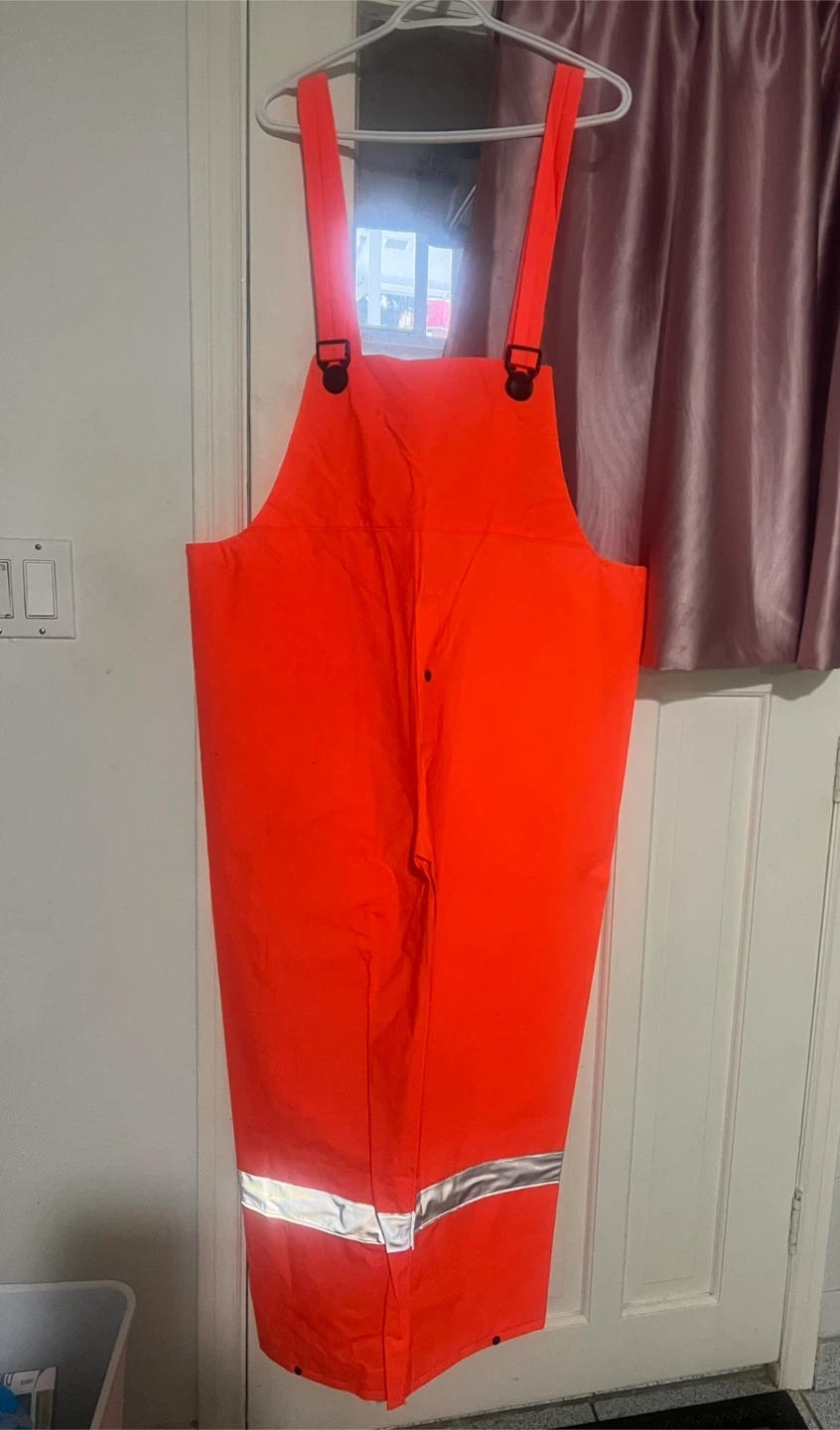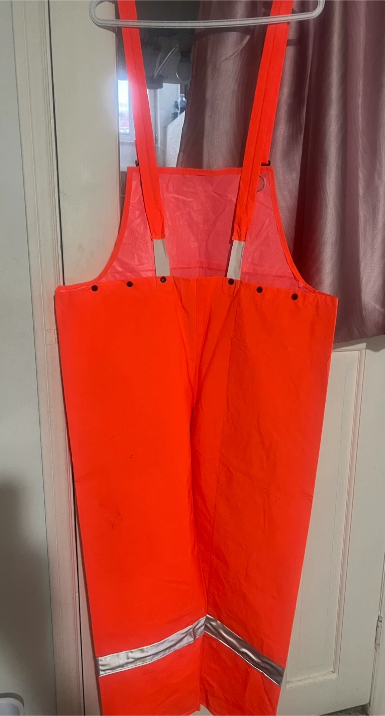 Selling a Storm Fighter rain gear set in bright orange! Includes both the jacket and pants. Great for staying dry and visible in wet weather. This is not used. It’s new.