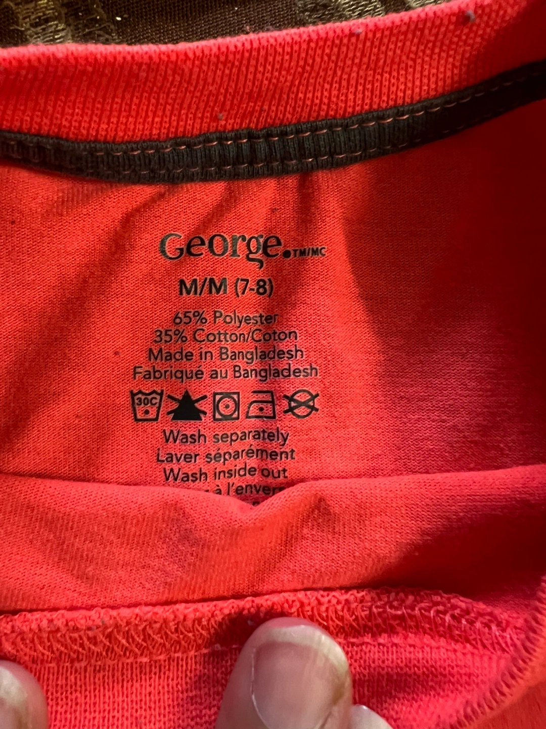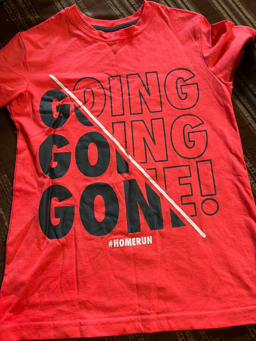 - George red t-shirt with 'GOING GOING GONE' print, size M (7-8)