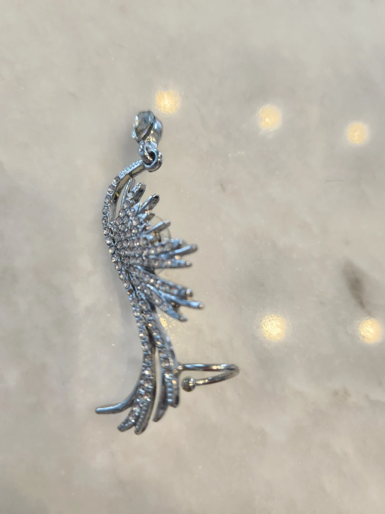 Selling a rhinestone ear cuff. It's a silver colour and has a leaf-like design with rhinestones. Would look great for a night out!