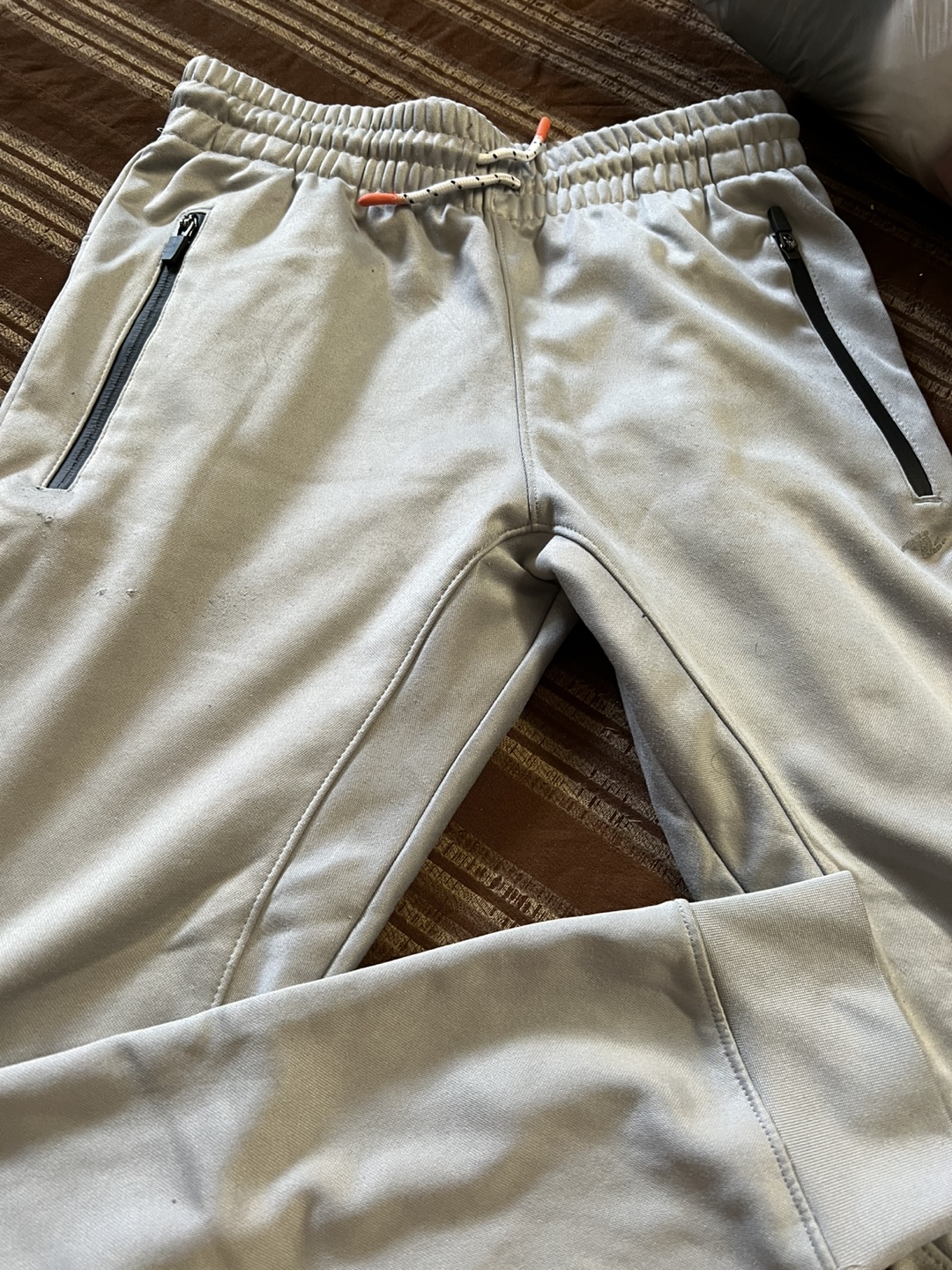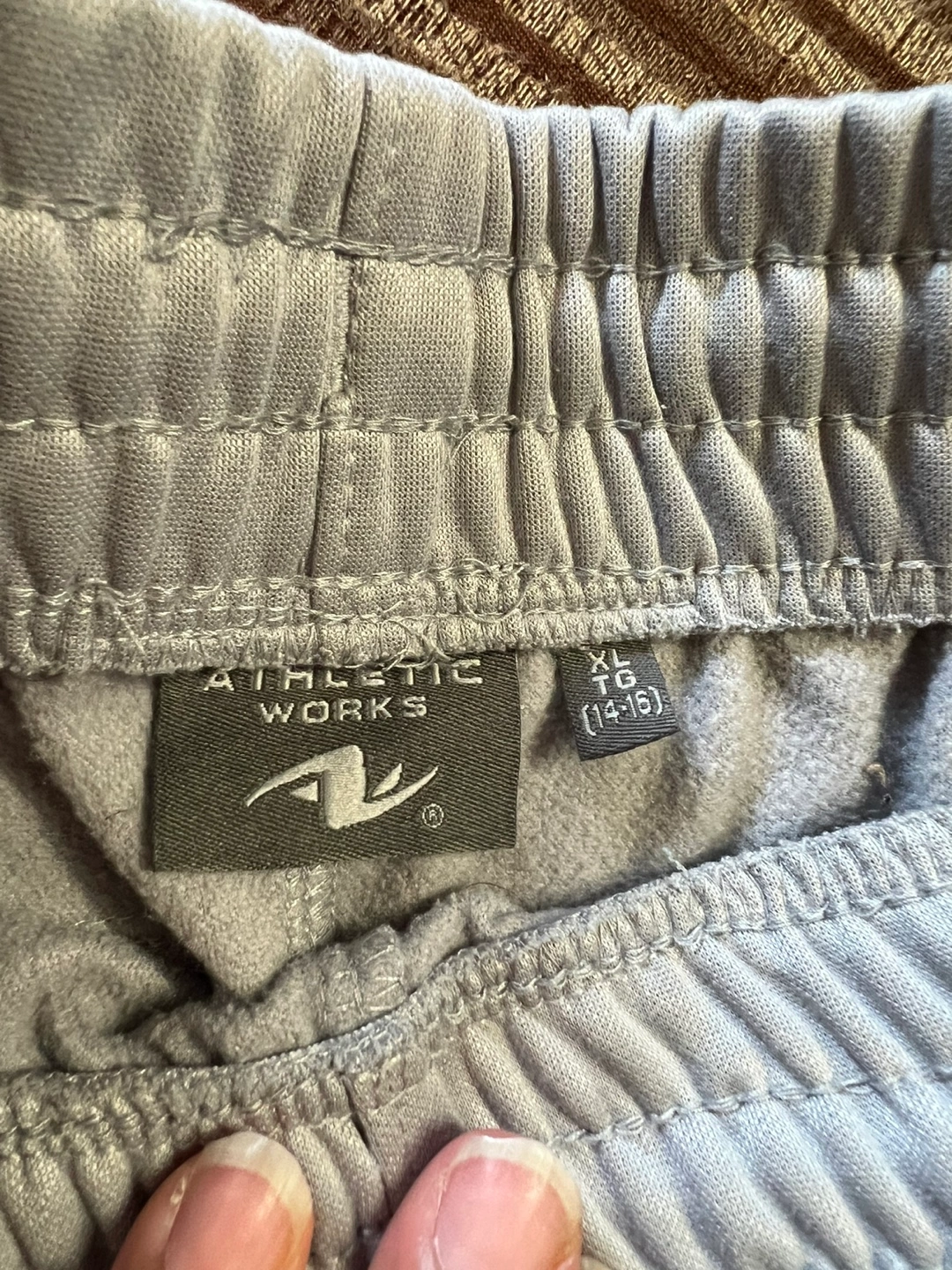 Selling a pair of Athletic Works pants in size XL (14-16). They're a nice light grey colour and feature zippered pockets. Great for sports or just lounging around!
