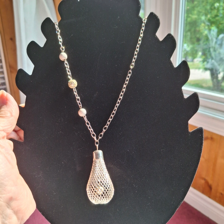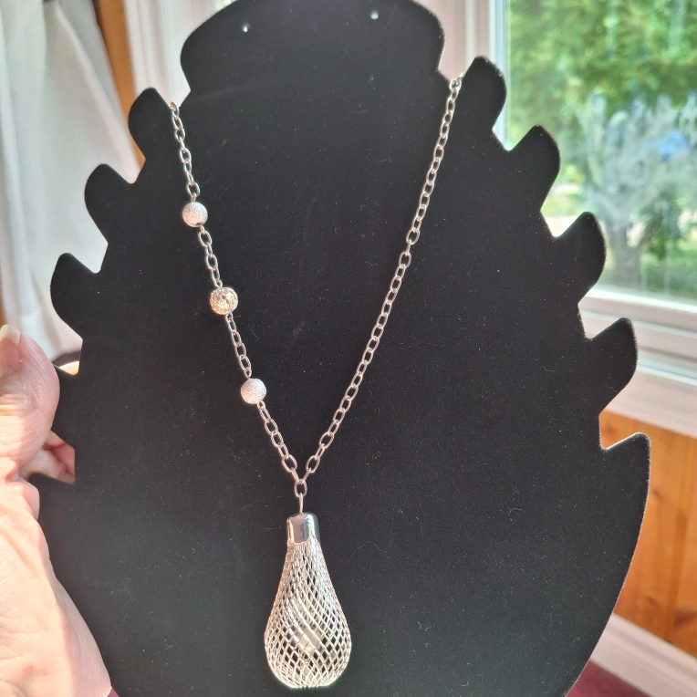 A lovely handmade silver plated necklace featuring a unique teardrop. It's ready to add a touch of elegance to your outfit.