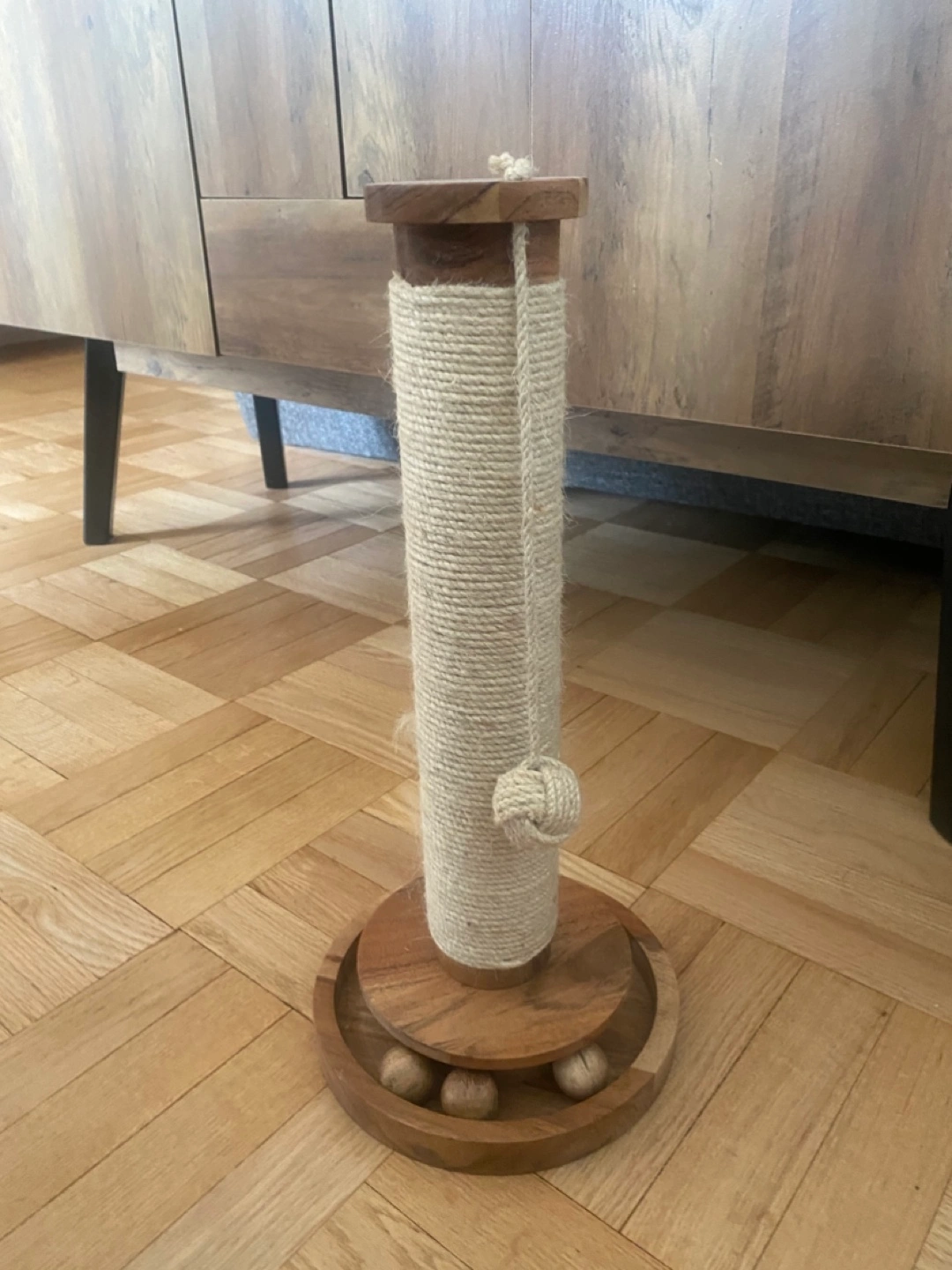 Cat scratching post, around 18” in height. My cat scratched it once lol so that is why I’m getting rid of it. He does like the ball game at the base but doesnt play enough to keep it.