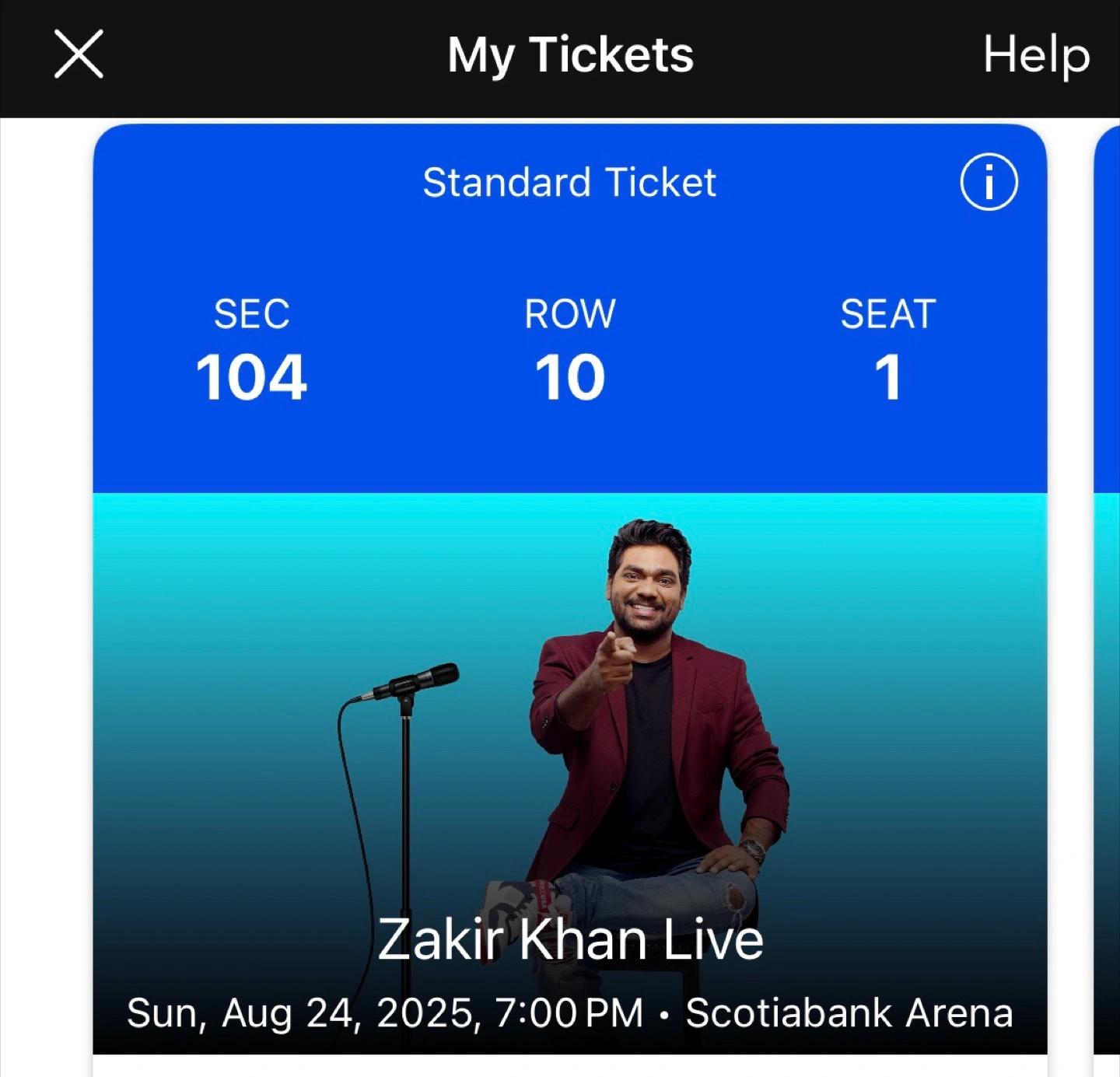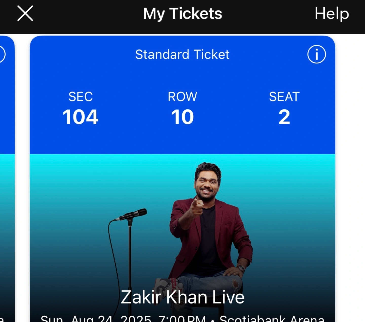Selling 2 tickets of Comedian Zakir khan show for 24th August 7 pm at Scotiabank Arena.