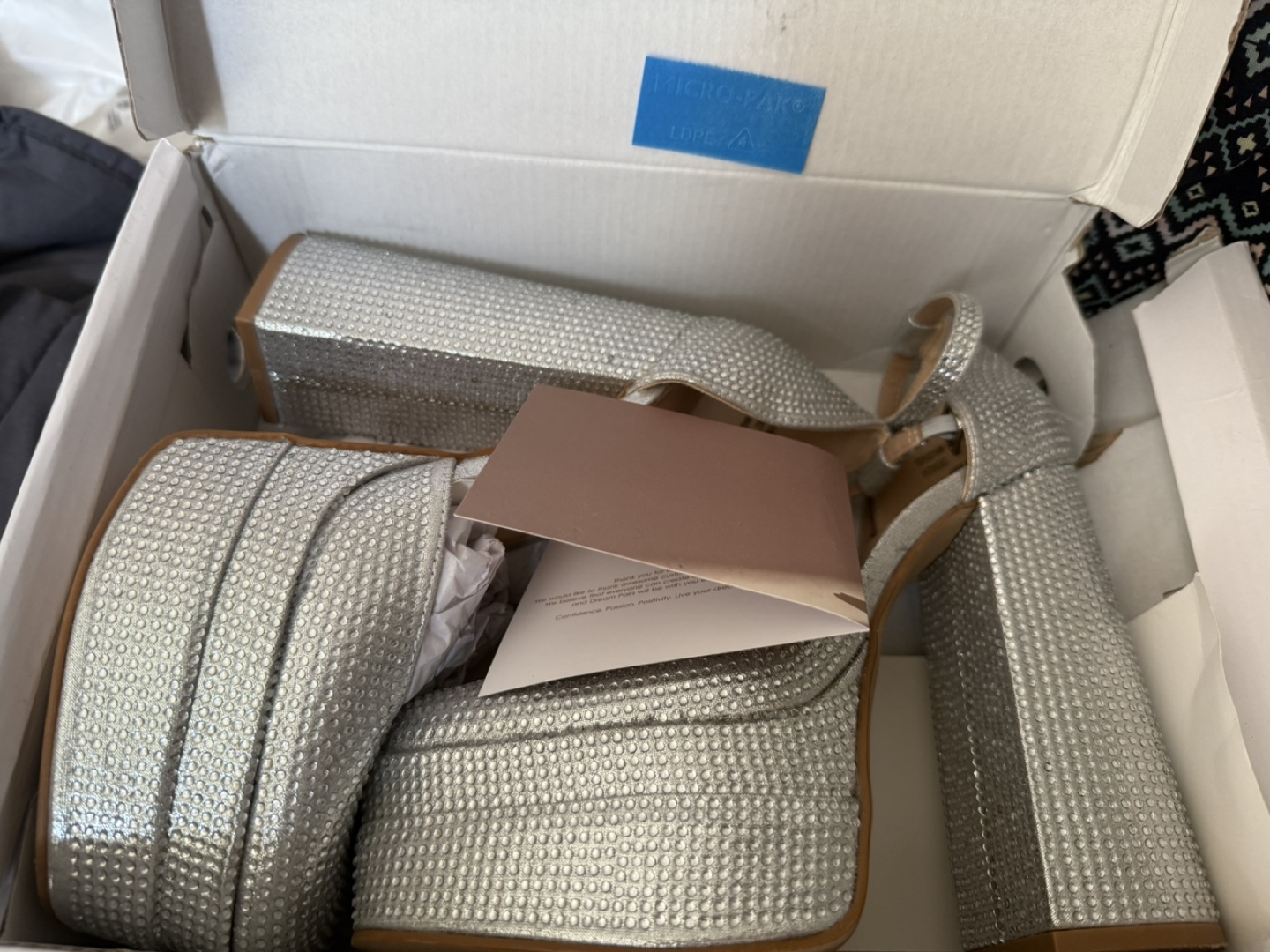 These silver rhinestone heels are super sparkly and ready for a night out! They come in their original box, so they're easy to store or gift. Perfect for adding some height and shine to your outfit!