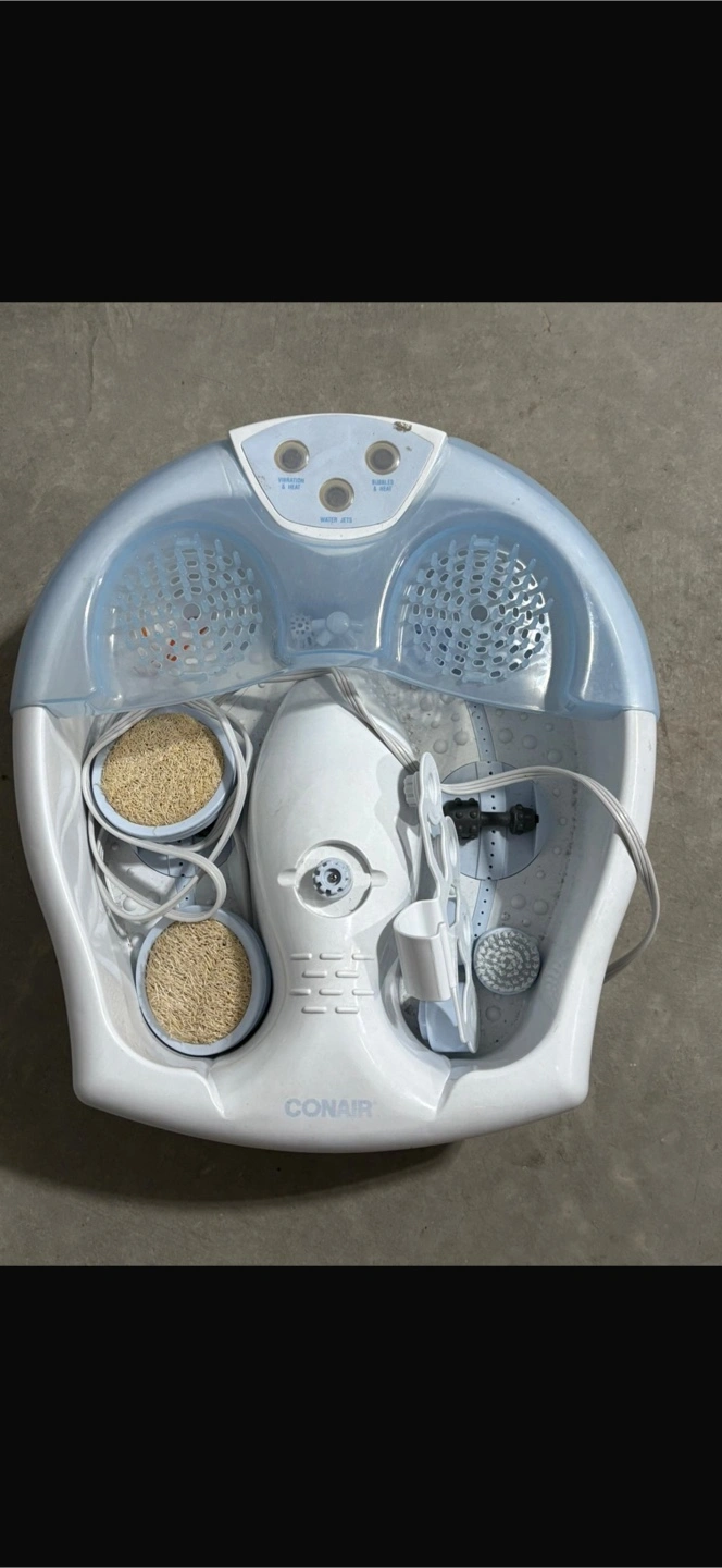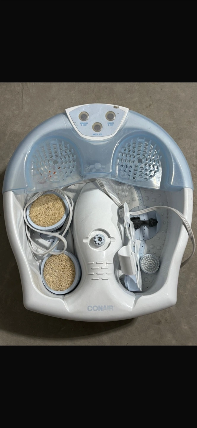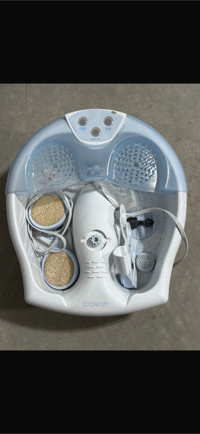 Selling a Conair foot spa! It comes with bubbles and heat settings for a relaxing experience. Perfect for unwinding after a long day on your feet